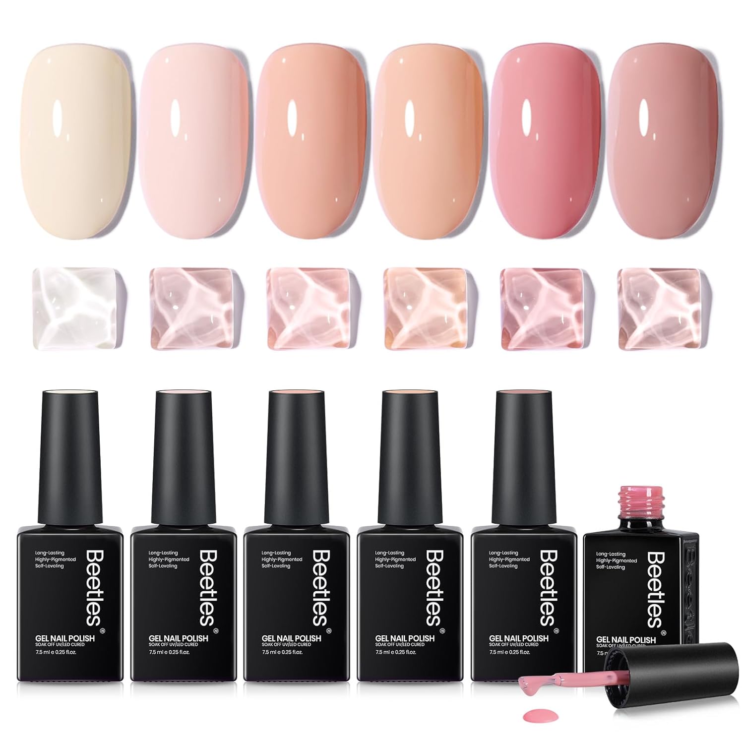 Beetle Nude Gel Nail Polish Set - 6 Colors Light Pink Nude gel polish colors Soak Off Gel Polish Kit Nail Art Manicure Salon Uv Led DIY at Home Vanilla Cloud Collection Gift for Women&Girls