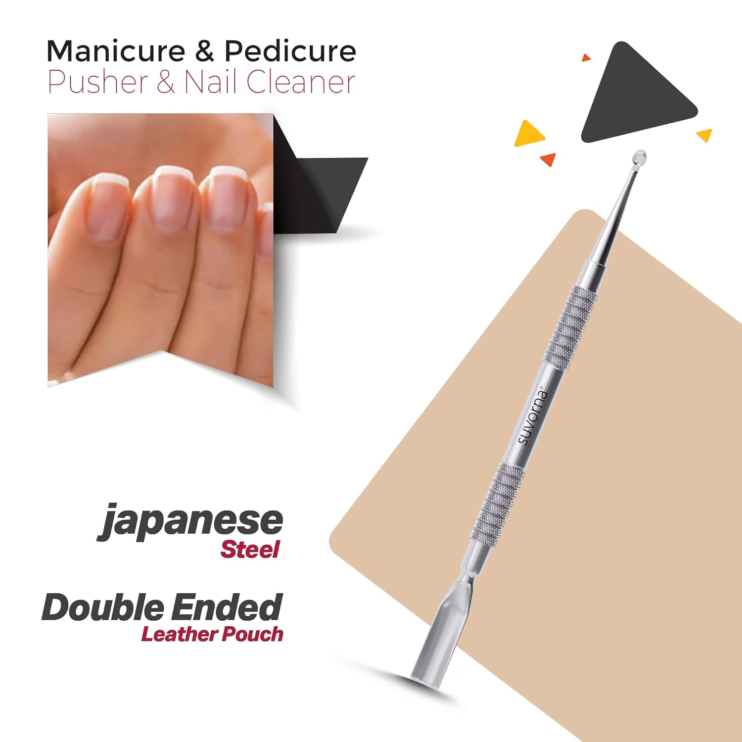 - Prime quality stainless steel Cuticle Pusher: Suvorna Cuticle Pusher Tool are manufactured by high quality Japanese stainless steel that makes them water-resistant, dust resistant, rustproof and corrosion-free tools. Due to its premium material, our Metal Cuticle Pusher is tarnish-free and can be used for a long time, easy to clean, you could sterilize our Gel Nail Remover with alcohol or any other disinfectant liquid to maintain nail care. You can use it as Pedicure Tools and Manicure Tools.