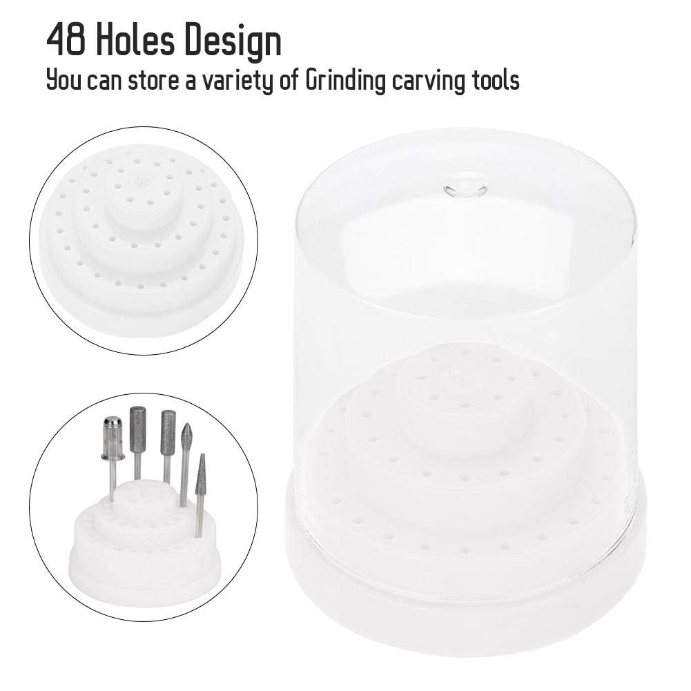 Sonew 48 Holes Nail Drill Bit Holder Professional Nail Art Plastic Drill Stand for Nail Art Drill Bit Organizer Box Holder(White)