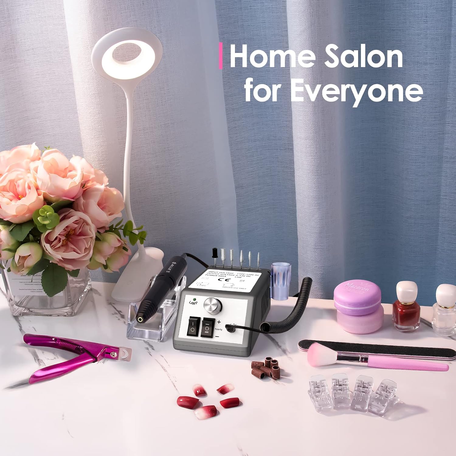 - PROFESSIONAL AND FUNCTIONAL NAIL DRILL - Alles Nail Drill machine is designed with 6pcs 3/32” replaceable nail drill bits and 106 pcs sanding bands for buffering, grinding, sharpening, sanding, polishing acrylic and gel nails, trimming thick natural toenails, and removing extension gels, cuticle and dead skin, which meets all nail beauty needs.