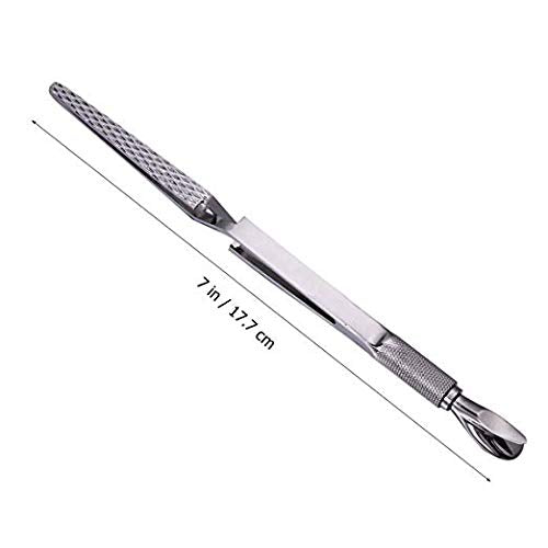 - MULTI-FUNCTION - There are two sides in one end, a pusher on one side for your nail beds and cuticles and on the other side, an edge to clean the undersides of your nails. The other end, you can use it as tweezers and false nail shaping.