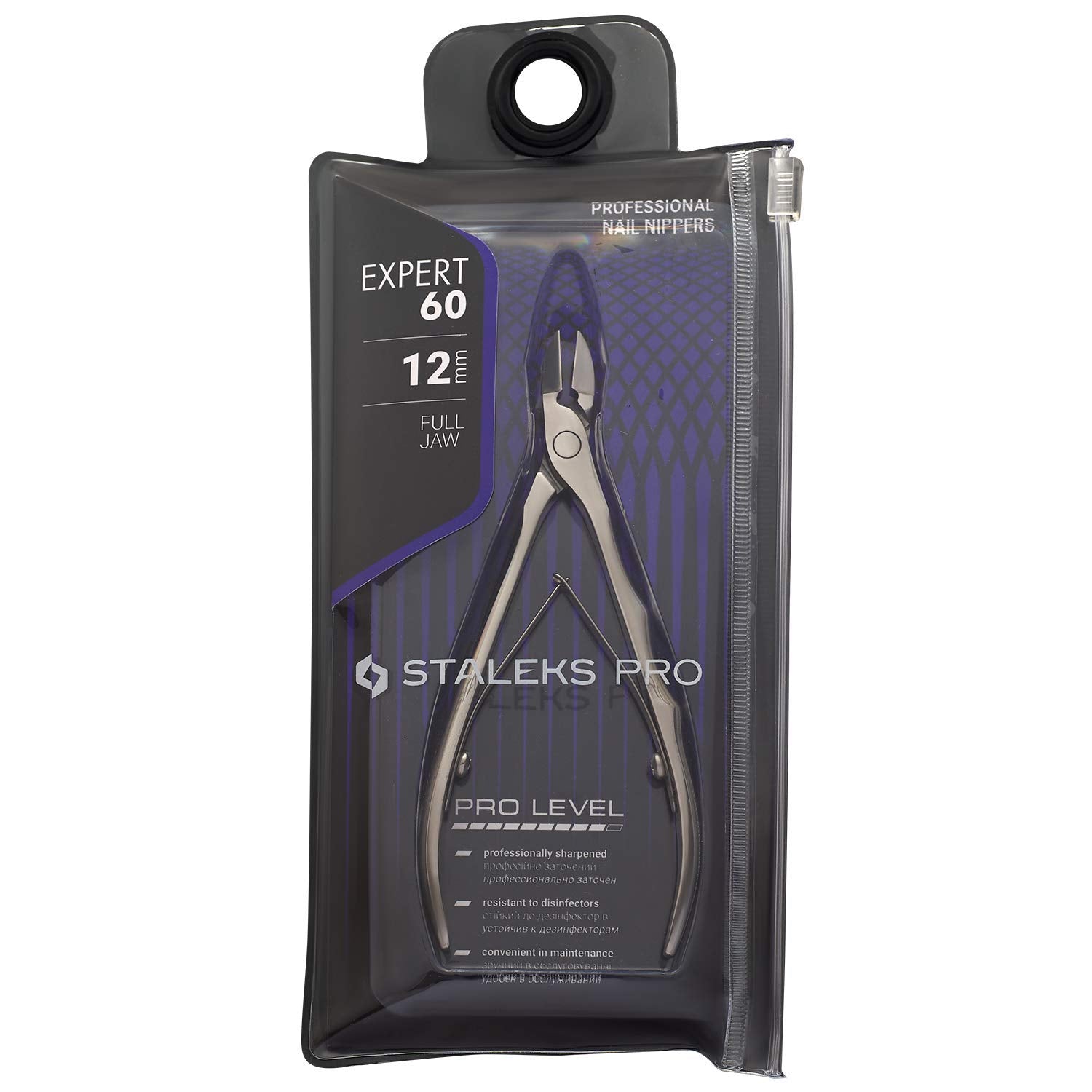 Staleks Expert 60 Nail Nippers 12 mm – Straight Edges Without Heel – Elongated Grooved Handles for Precise Pedicure