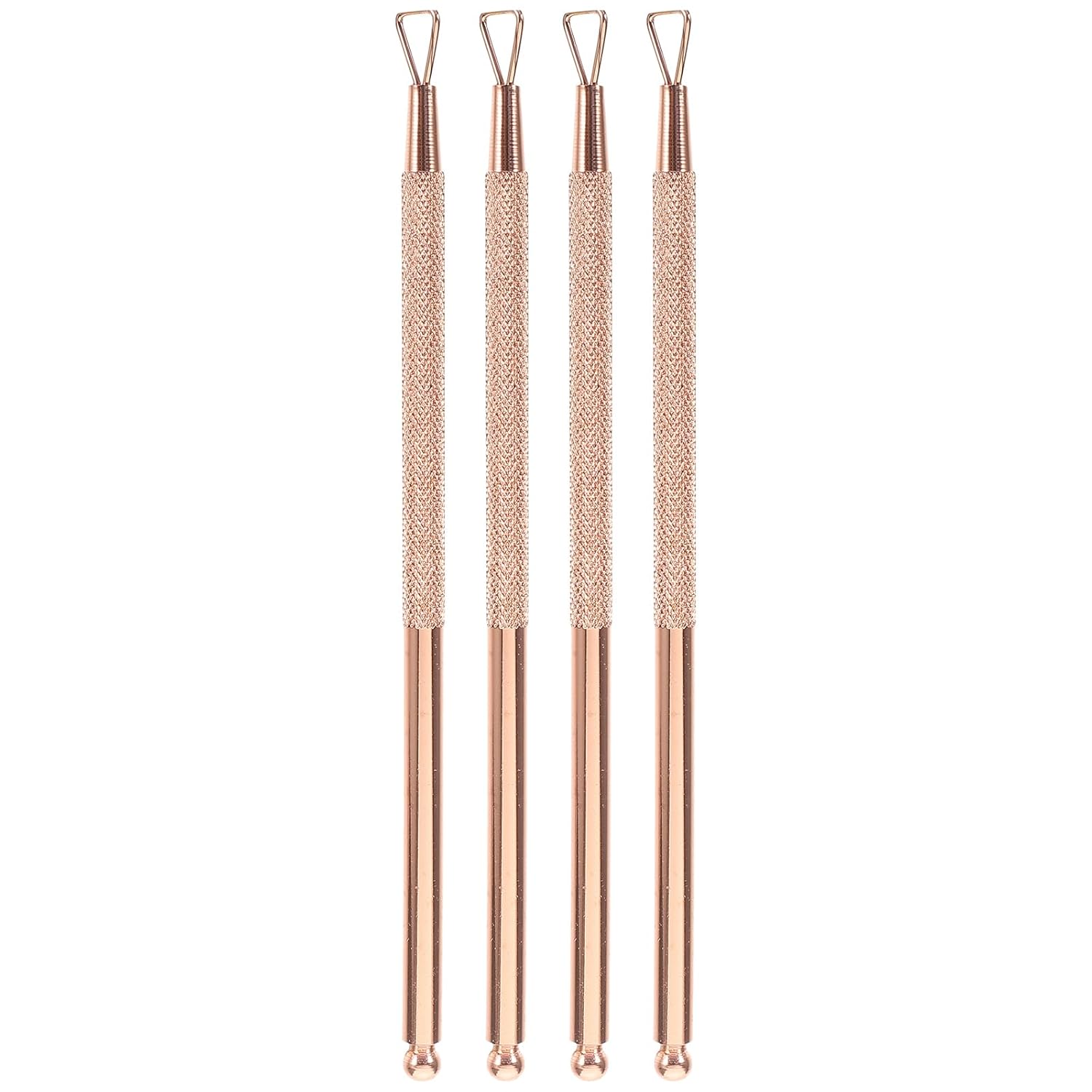 Uonlytech 4 Pcs Stainless Steel Cuticle Pusher Triangle Cuticle Peeler Scraper Gel Remover Nail Polish Nail Art Remover Tool for Manicure Beauty Salon(Rose Golden)