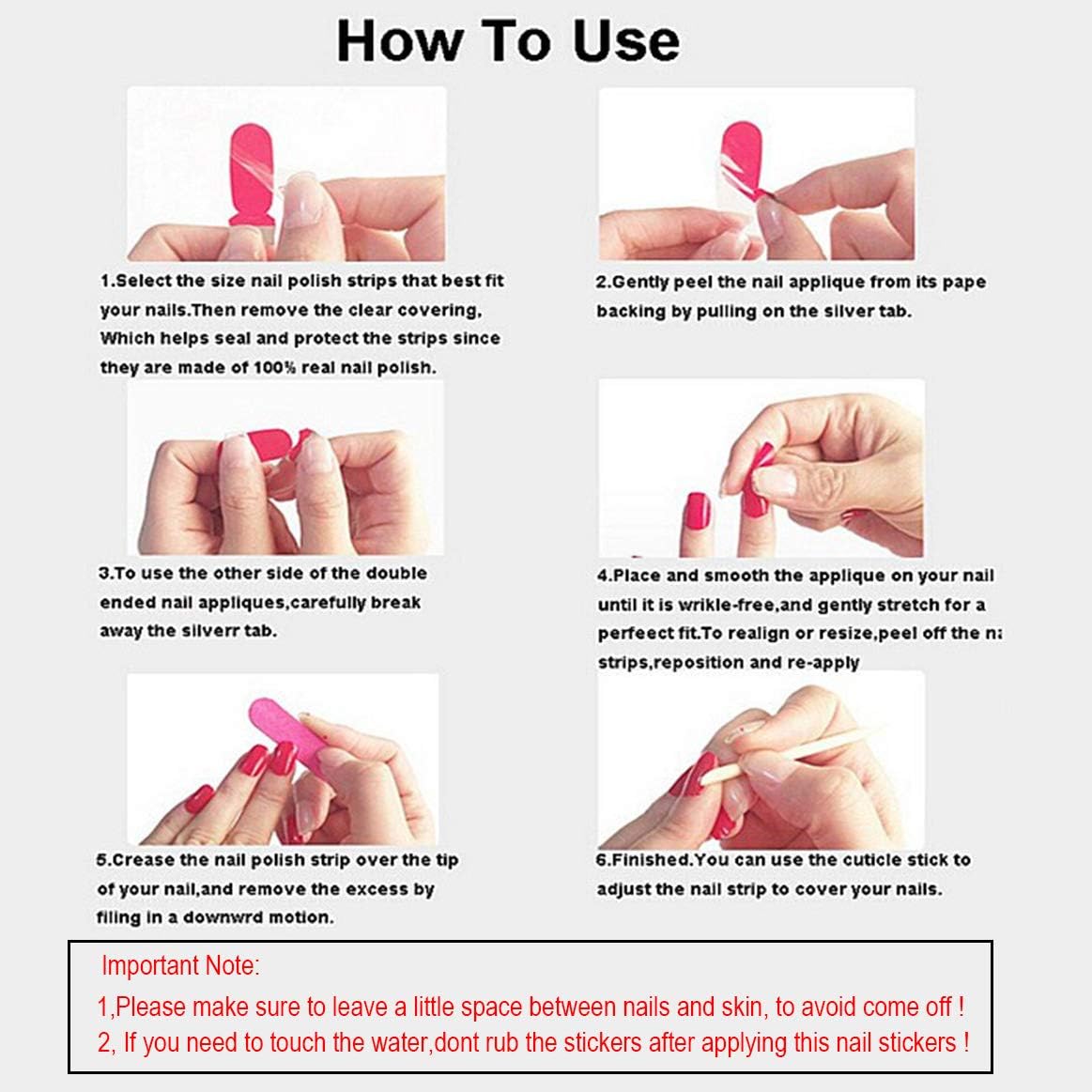 - Safe Material With Eco Friendly Technique: Easy to apply onto your nails with our instructions, none of Nail polish/Glue/Nail polish remover are need, that would not hurt nails.
