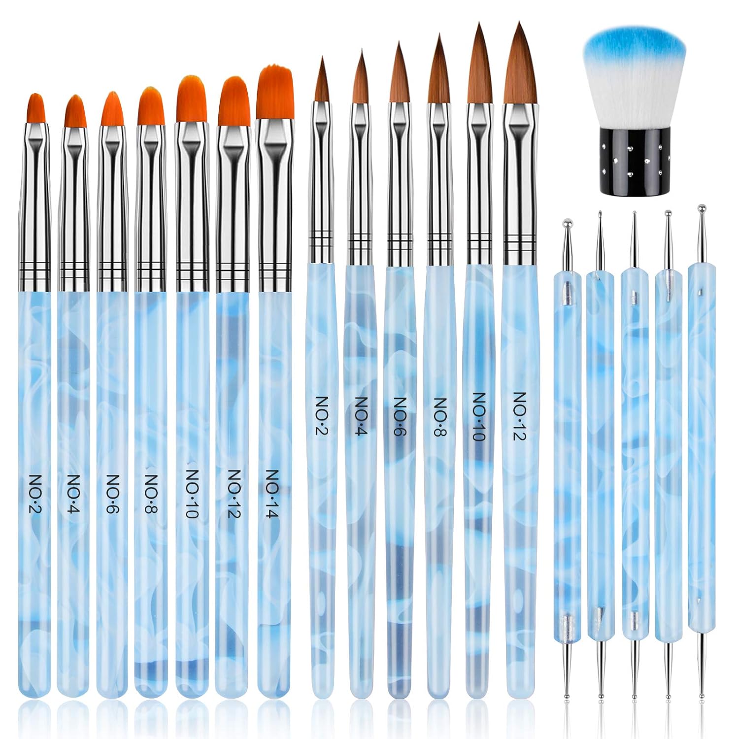 TOROKOM 19Pcs Nail Art Brushes Set, Nail Art Tool for Acrylic Application, Incl Nail Dotting Pens, Nail Dust Brush, Extension Gel Brush for Home Use and Professional Nail Salon