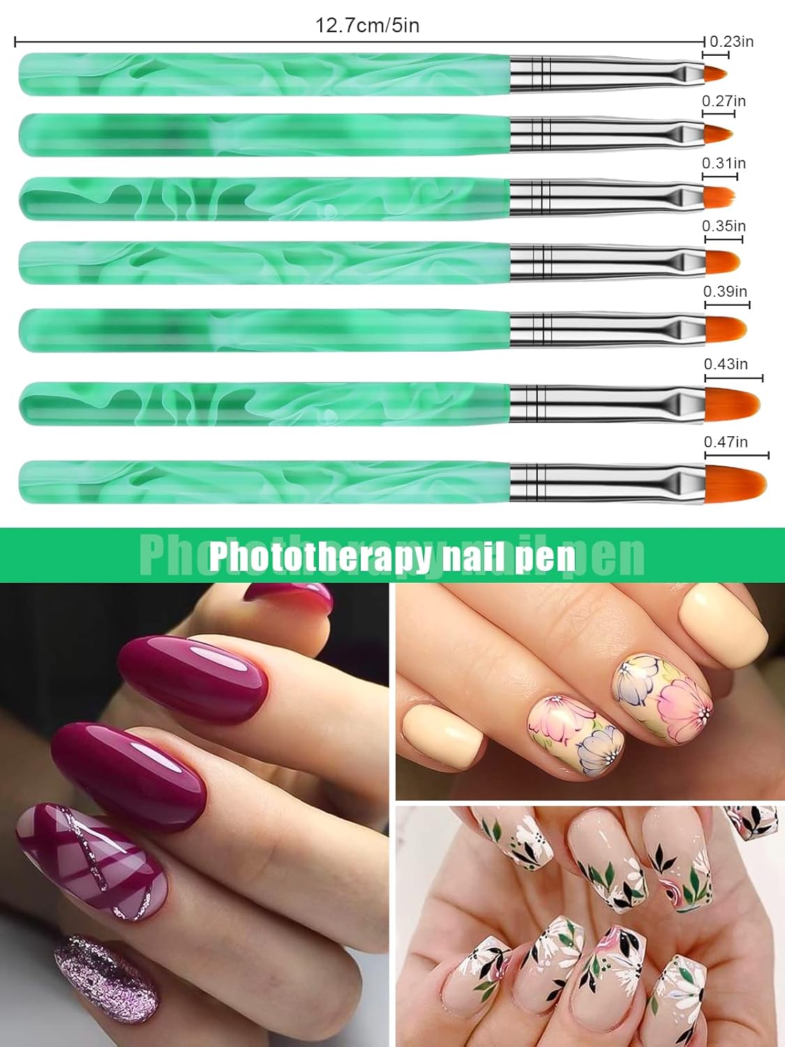 - 🌝Reliable Material - Kolinsky acrylic nail brush set mainly consist of 2 parts. The brush heads are made of artificial kolinsky hair and nylon bristles, which are pliable and comfortable for your fingernail, hardly causing scratching or falling; The brush handles are made of quality acrylic and green aluminum ferrules, which are smooth and lightweight, easy to grip