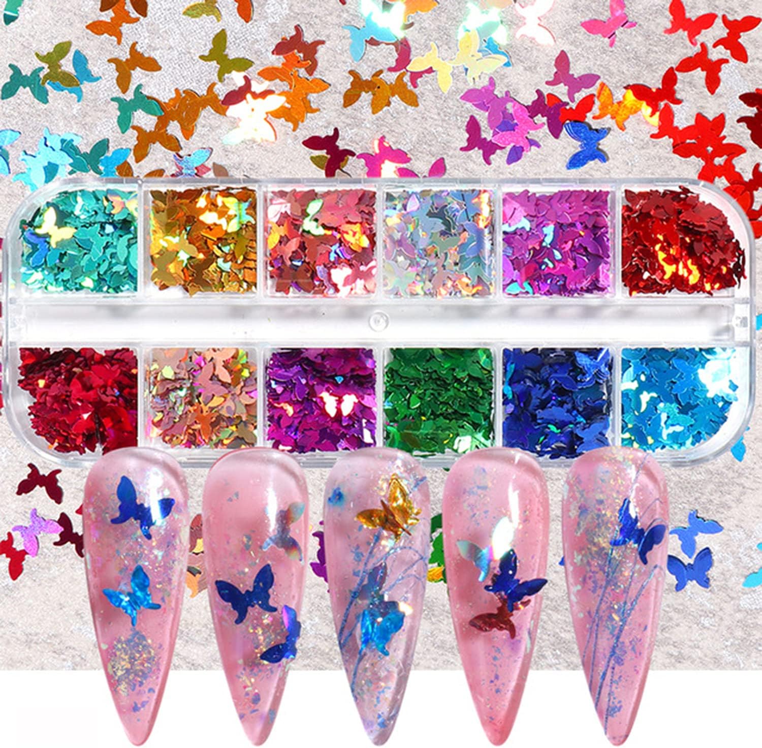 - 【Package】12 Colors sparkly butterflies nail flakes come with 12 grids with separate storage space. So when you use it, you can choose your favorite color more quickly.