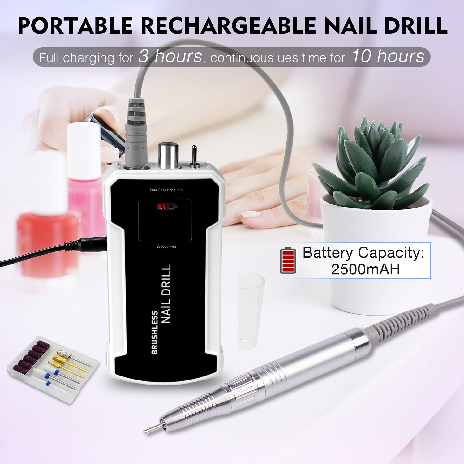 Professional Nail Drill Machine, IMENE 35,000RPM Portable Brushless Nail Drills Rechargeable E-File Nails Drill Perfect for Acrylic, Gel, Natural Nails (Black)