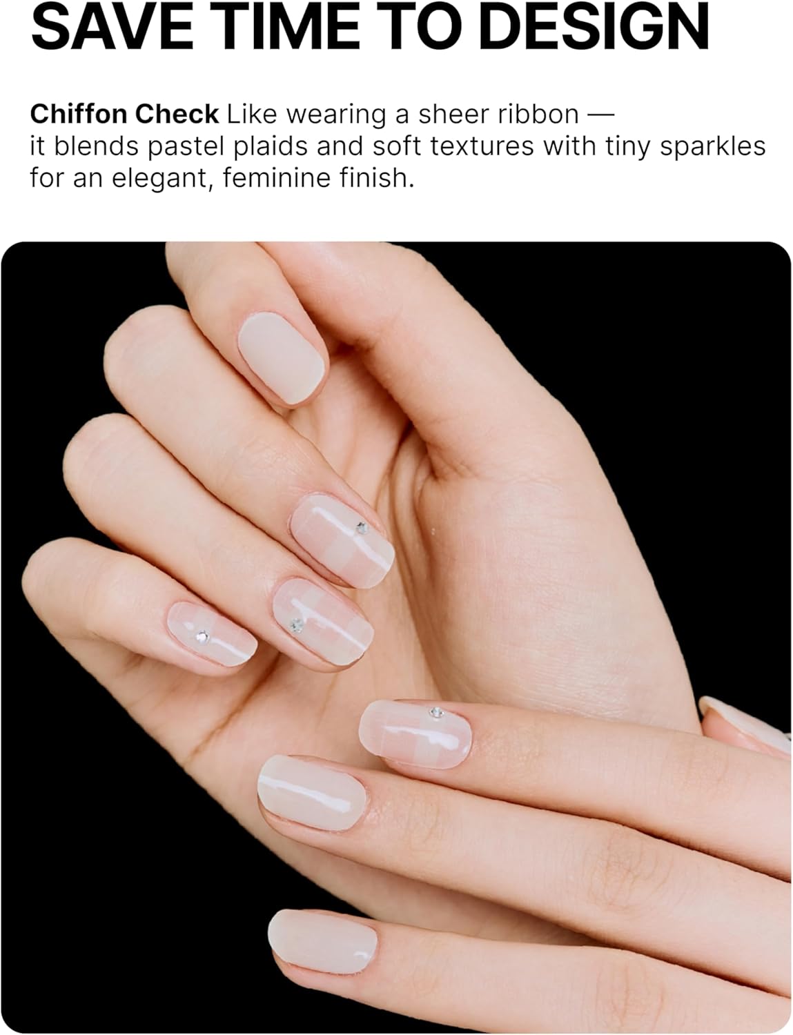UUUUUU Semi Cured Gel Nail Strips | Salon-Quality | UV Free Gel Nail Wraps for Women | Easy Peel&Stick | Long-Lasting up to 14 Days | 28 Strips Set+File & Wipes | Gift-Ready (UGN054 Chiffon Check)
