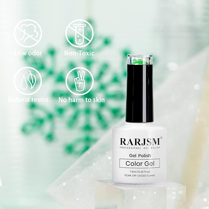 - Resin Formula:RARJSM Reflective Glitter Gel Nail Polish is made with an formula, this gel polish is easy to apply, and not easy to peel off. They are low odor, rich in color, medium in consistency, self-leveling, without shrinkage and fringing. The perfect gel polish for family, friends or relatives for Valentine's Day, Easter, Mother's Day, Thanksgiving, Christmas