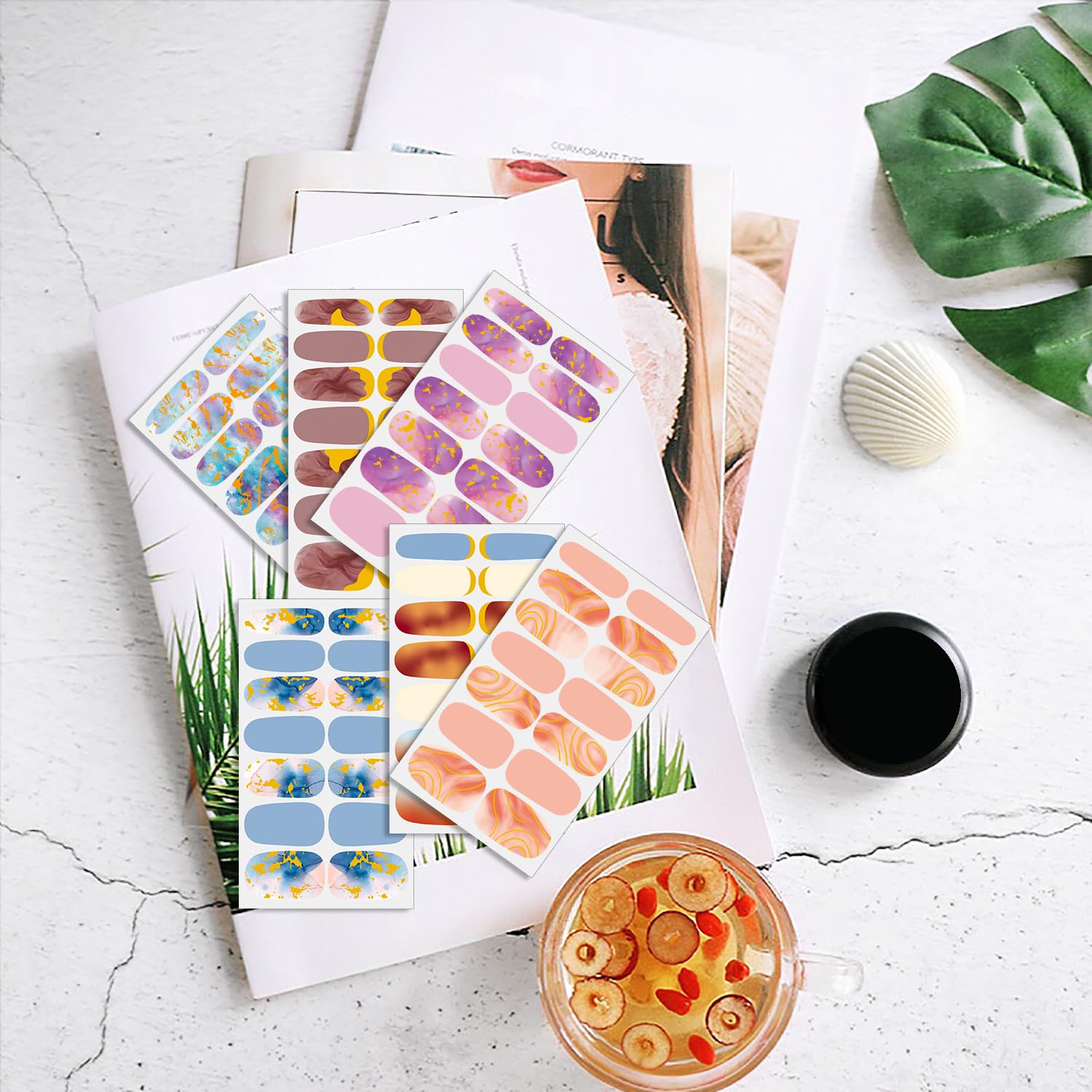 - 【MUTIPLE MARBLE DESIGN】: these full nail wraps including various different color marble pattern desings, include black, pruple, blue, etc. which is fashionable to mix up with different style everyday, fit for different occasion and dress, concise but unique, make your nails more dazzling and charming.