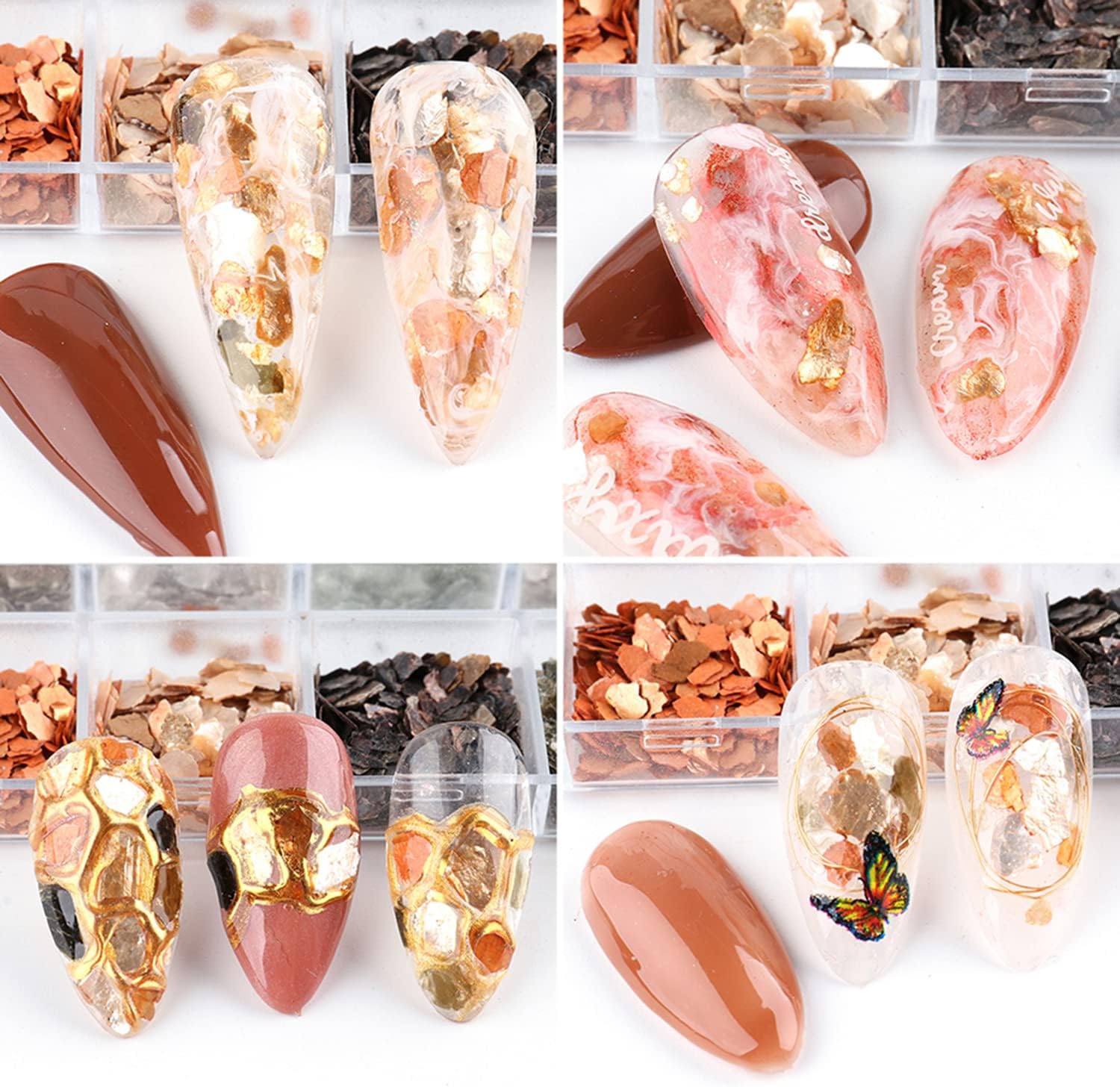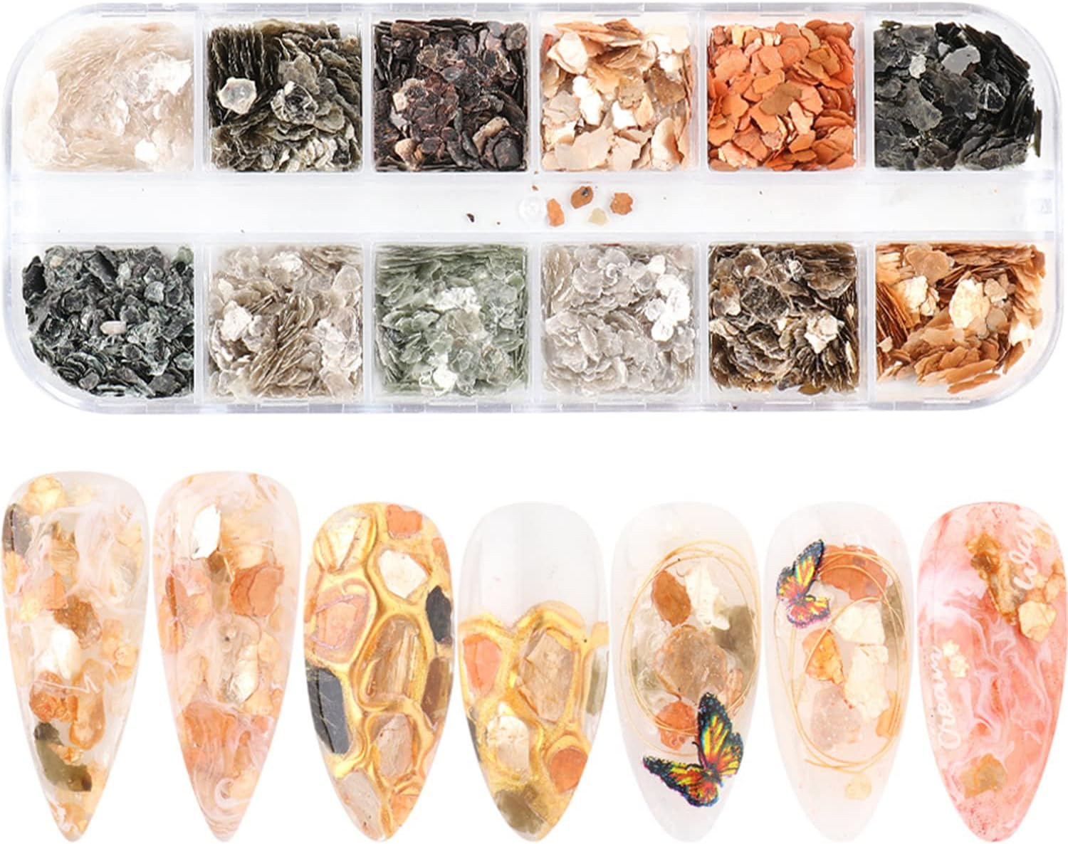 - 【Quantity】You will get 12 grids Japanese style mica marble nail art flakes, 12 kinds of bright colors and patterns are arranged in 12 small grids respectively, variety of shapes and colors are convenient for you to choose to DIY decorate your nails.