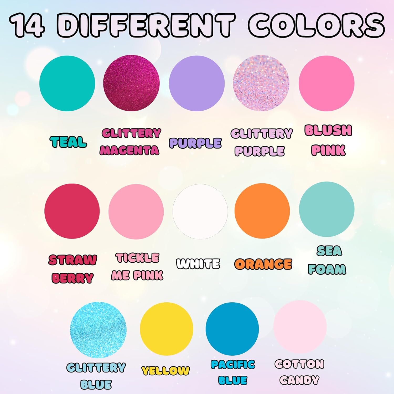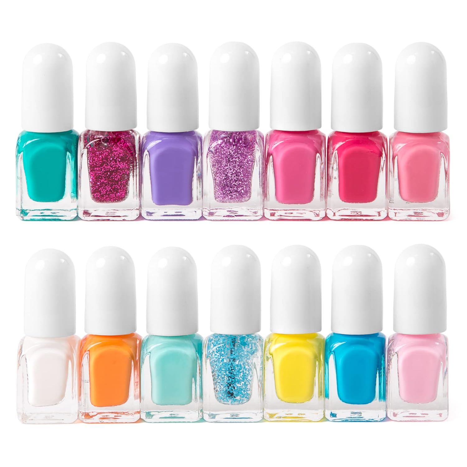 - SPARKLY SHADES NAIL POLISH FOR EVERY OCCASION: This stunning Kids Nail Polish Set for Girls set of 14 vibrant nail colors is perfect for adding a pop of color to any look. From soft pastels to bold hues, this collection has something for every outfit and occasion. Three of the shades feature a glittery sheen, adding a touch of extra glamour to every manicure.