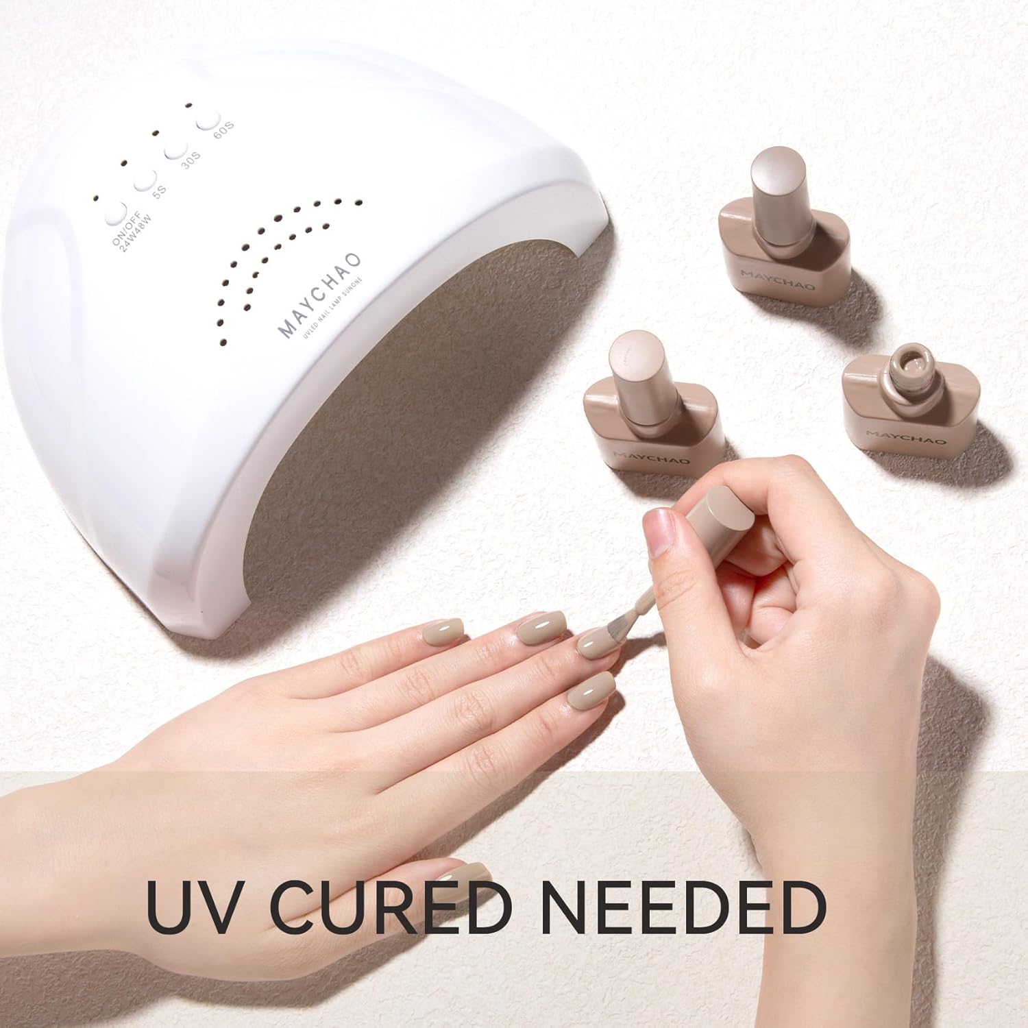 - Fast and Simple Nail Polish: MAYCHAO Gel polish must be cured under an LED light. It is necessary to apply a base and top coat. Average LED light duration is 60-120 seconds. Simple application and tenacity.