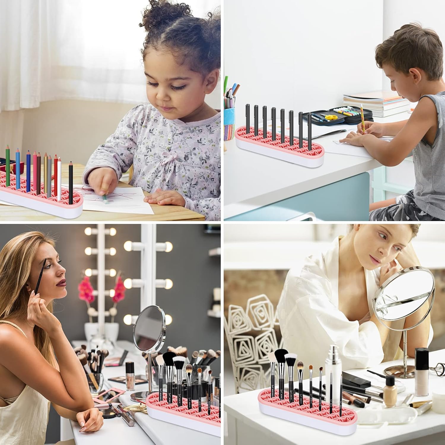 - Multifunctional: Design with 3 sizes of flexible silicone holes that can accommodate items of various sizes and shapes, which can hold brushes, eyebrow pencils, tweezers and more, or hold paint brushes, toothbrushes, office supplies, and even arts ect.