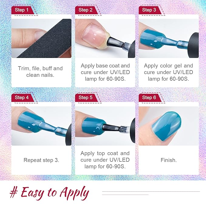 - Warm Tips: Gel nail polish will show slight differences under different light sources and displays, which is allowed within the normal range. If you are a novice and do not know how to proceed, please read the instruction manual carefully and follow its steps. If you have other questions, please contact us.