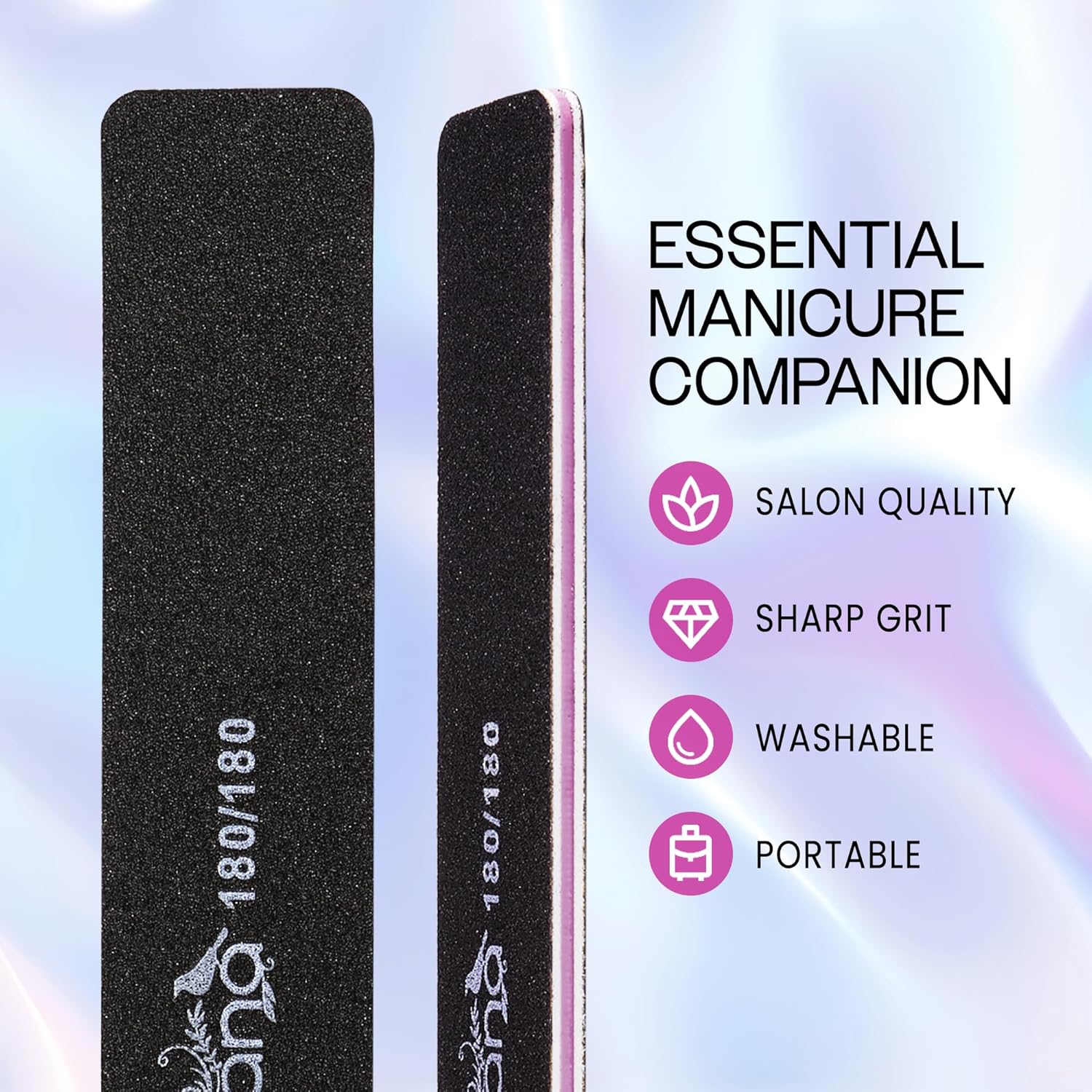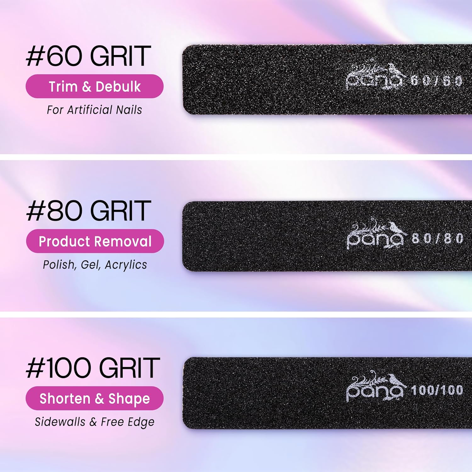 - [Uses] These nail files are ideal for shaping and smoothing natural and acrylic nails. The effective grit allows for quick reduction of length and thickness, while also refining edges with precision.