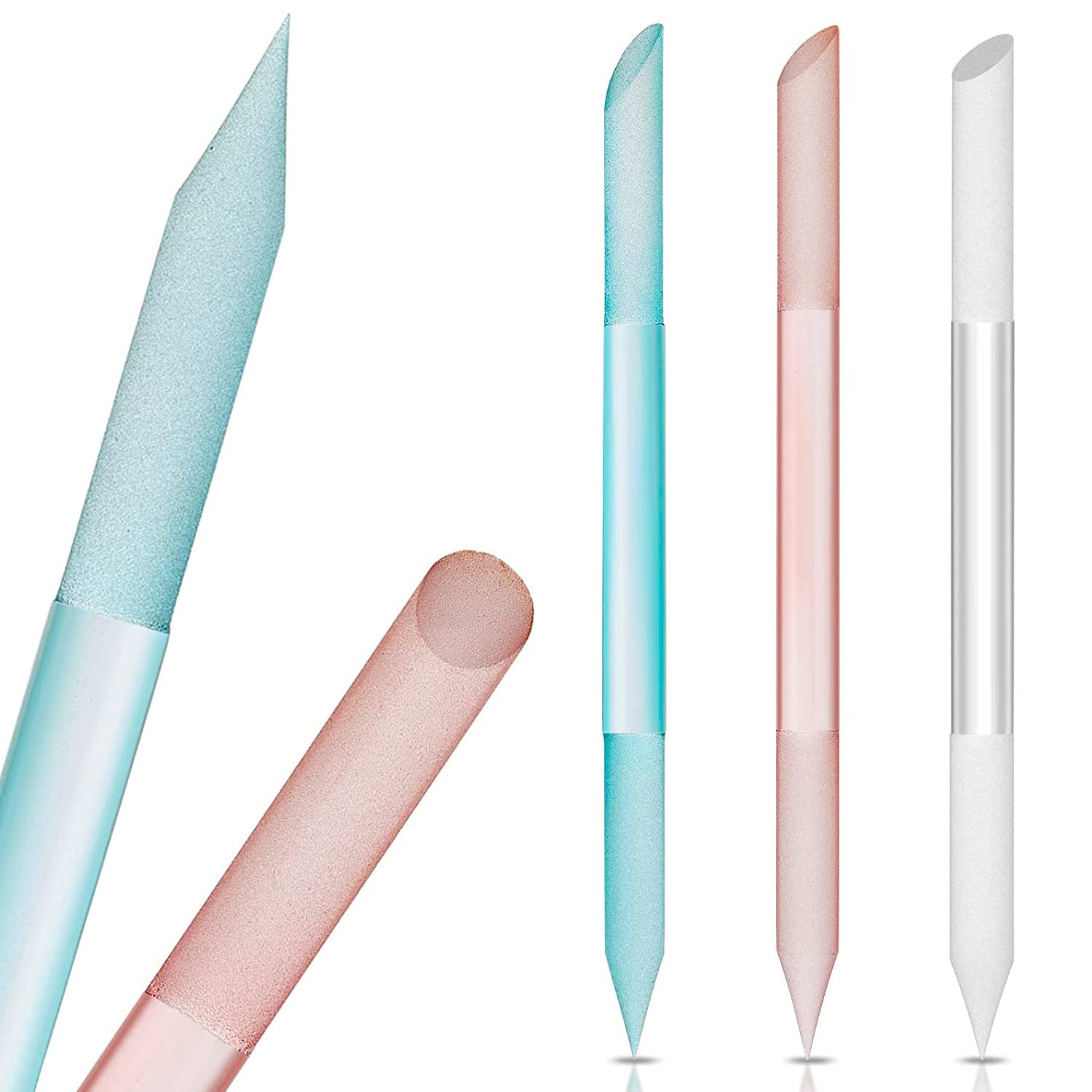 SILPECWEE 3 Pieces Glass Cuticle Pusher Glass Nail File Crystal Glass Cuticle Stick Set Double Sided Cuticle Remover Tool Cuticle Tools for Nails Manicure Pedicure Precision Filing