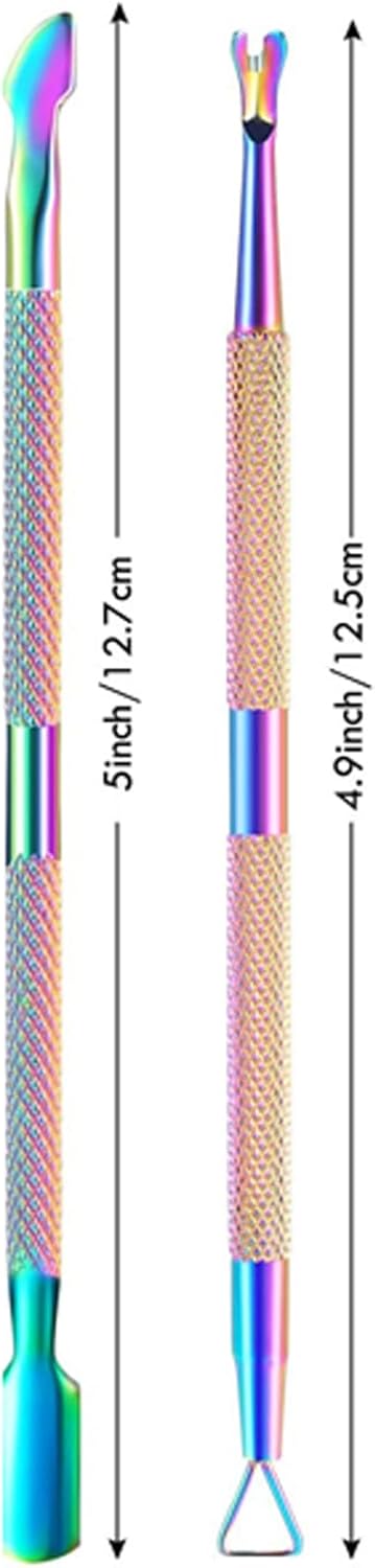 - Ergonomic Non-slip Handle Design -- Our professional cuticle remover tools set is designed with an ergonomic non-slip handle, providing you with a comfortable hand feeling, you can remover the cuticles more effectively. In addition, the chameleon design makes it a beautiful set of color manicure artwork.