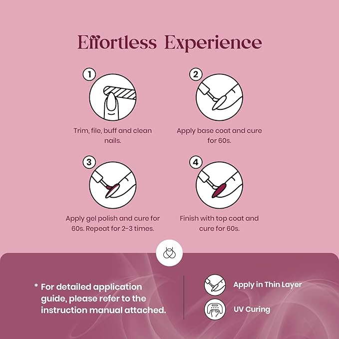 - Durability and Easy Application:Beetles purple gel nail polish kit with highly pigmented and tenacious gel material provides a brilliant shine finish, smooth appearance, and flawless coverage. Soak-off gel nail polish requires base and top coats and cures in just 60-120 seconds under UV nail lamp, which can last for more than 28 days. Use Beetles UV Nail Lamp, Get Better Effect
