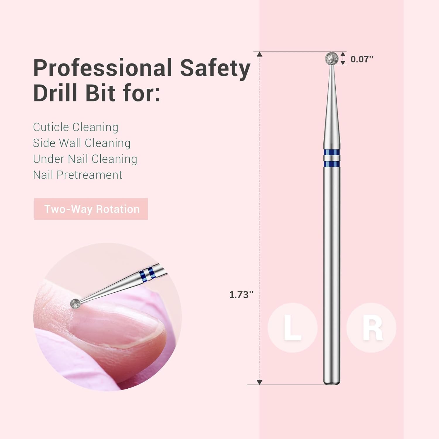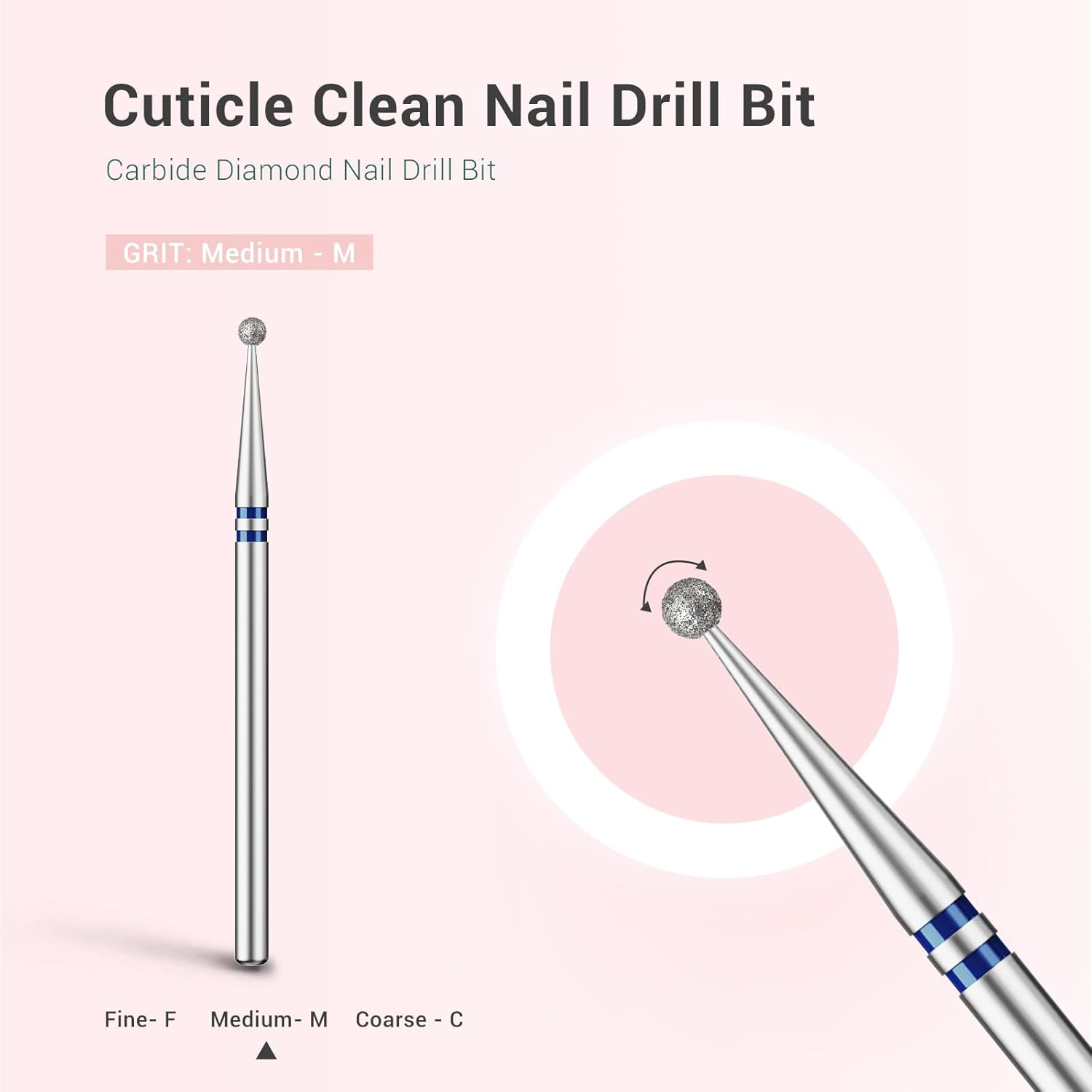 MelodySusie 1.8mm Ball Shape Cuticle Clean Nail Drill Bit 3/32'', Professional Safety Carbide Diamond Under Nail Cleaner for Cuticle Dead Skin Nail Prepare, Beginners Bits, Series Bit-S, Medium