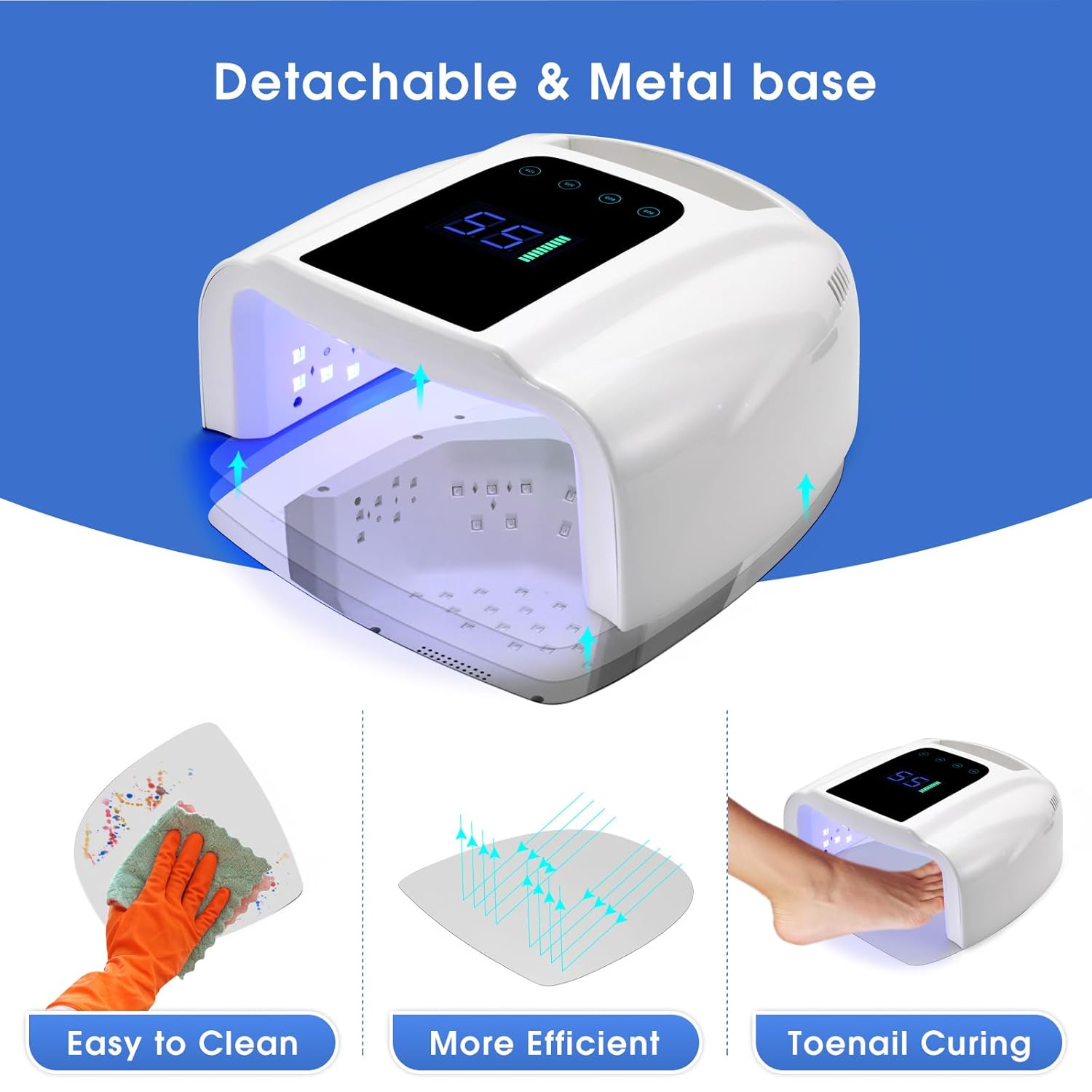 - 【Painless Curing Mode & Infrared Senor】 Our rechargeable UV LED nail lamp provides smart over-temperature protection for your hands and eyes,protects your tender skin from getting dark or burned.In 90s mode,it can relieve burning sensation and bring you a comfortable salon-like manicure experience