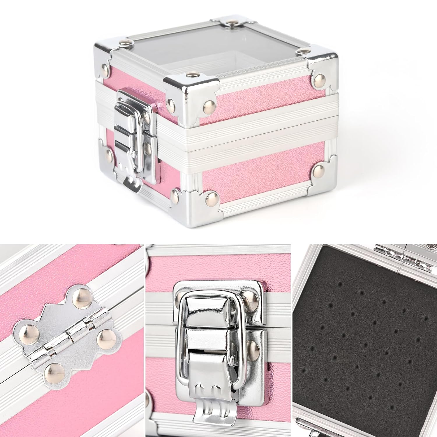 - 【Quality Material】-- Made of the high quality Aluminum material, which is safe, environmental and durable. Nail polisher storage box holds up to 25 drills and transparent cover makes it easy to find your nail pieces to look at. The size: 7.8 x 9.1 x 6cm / 3.1 x 3.58 x 2.4 inch.