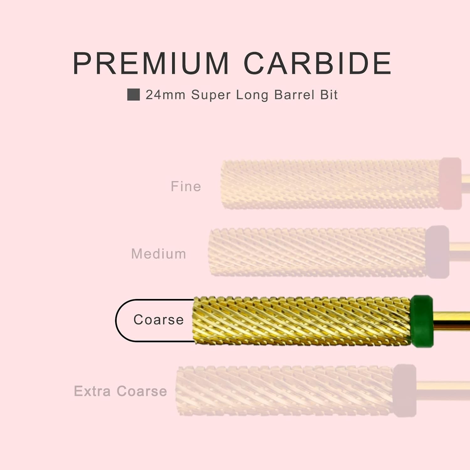 Super Long Nail Drill Bits, 24mm Gold Flat Top Barrel Carbide Nail Bit, 3/32" Two-way Rotate Drill Bits for Nails, Electric Drill Accessories, Remove Acrylic Nail Art Gel, C