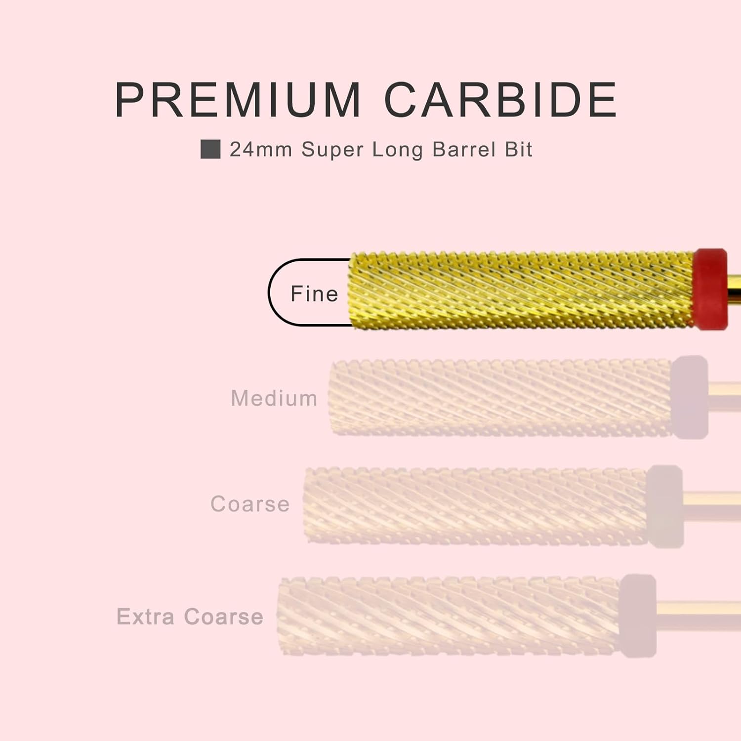 Super Long Nail Drill Bits, 24mm Gold Flat Top Barrel Carbide Nail Bit, 3/32" Two-way Rotate Drill Bits for Nails, Electric Drill Accessories, Remove Acrylic Nail Art Gel, F