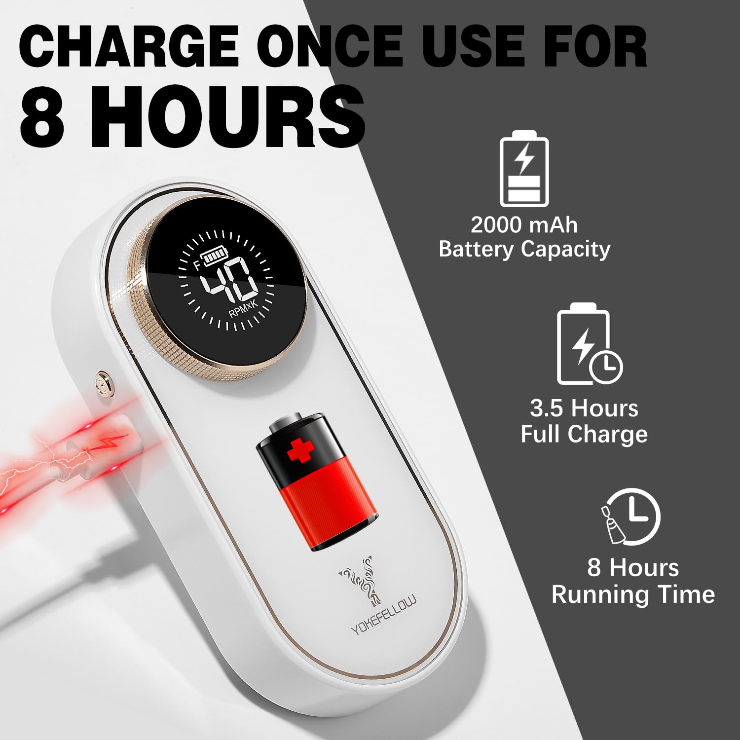 - [High Capacity Battery]: Bulid in 2000mAh battery capacity which it is need only 3.5 hours fully charged for running up to 8 hours. Comes with an upgrade USB interface, connect with any USB socket, such as laptop, AC adapter and even your car charger.