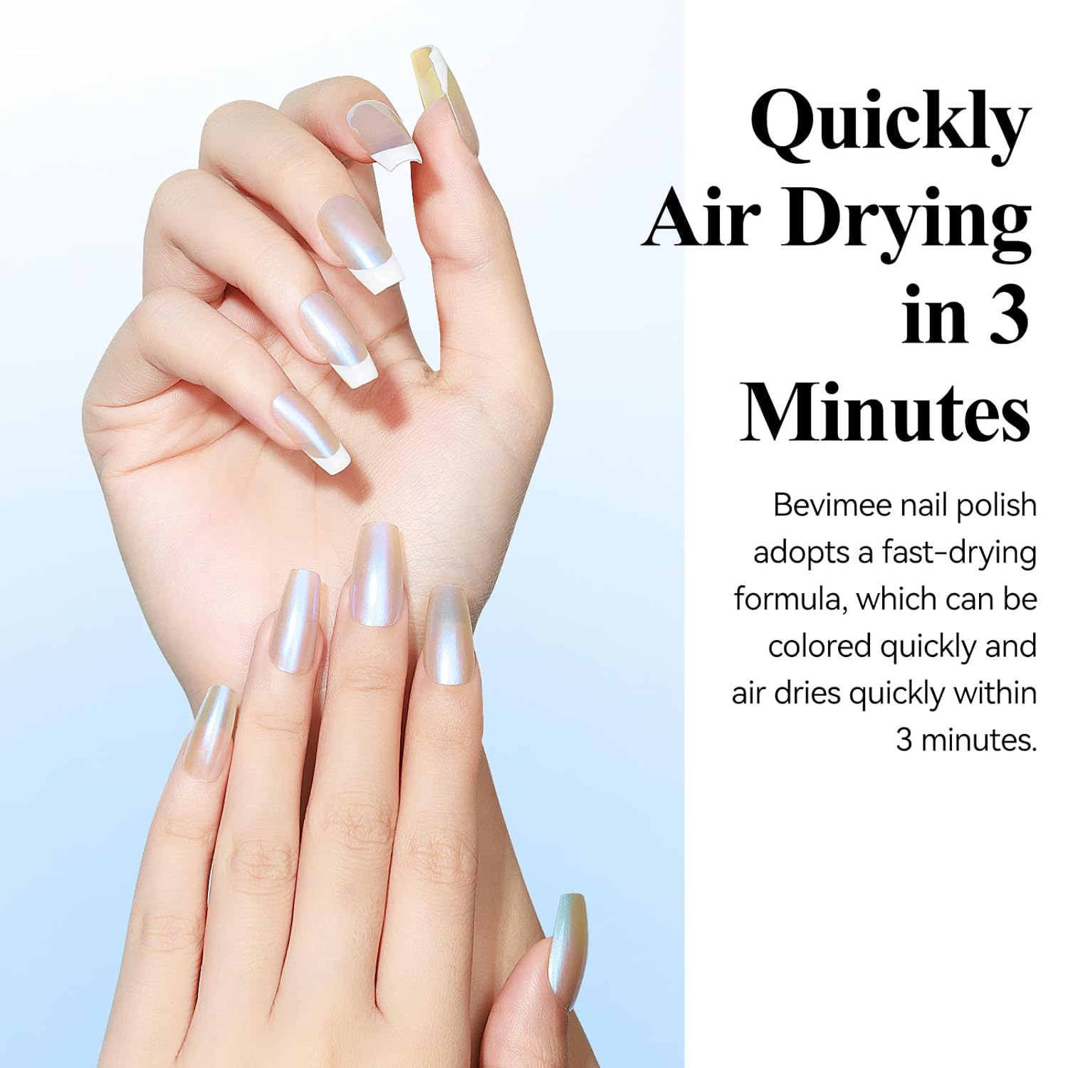 - Quick Dry In 3Mins: Bevimee nail polish is made of fast-drying natural resin formula, which can be colored quickly and air dries quickly, don't require extra UV/LED Nail Lamp, Off in minutes,mirror shine finish