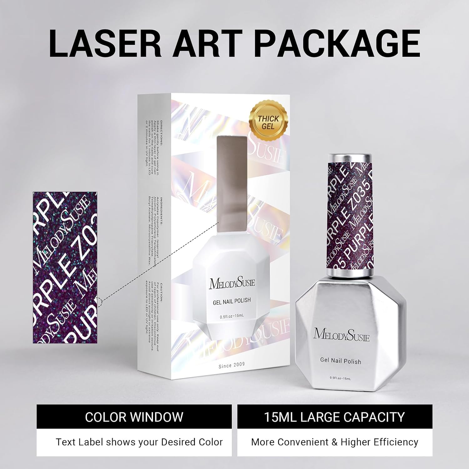 MelodySusie Purple Glitter Gel Nail Polish,0.5fl oz Universe Star Glitter Nail Polish Purple Blue Color Z035, Soak Off UV LED Nail Lamp Gel Polish Nail Art Starter Manicure Salon DIY At Home