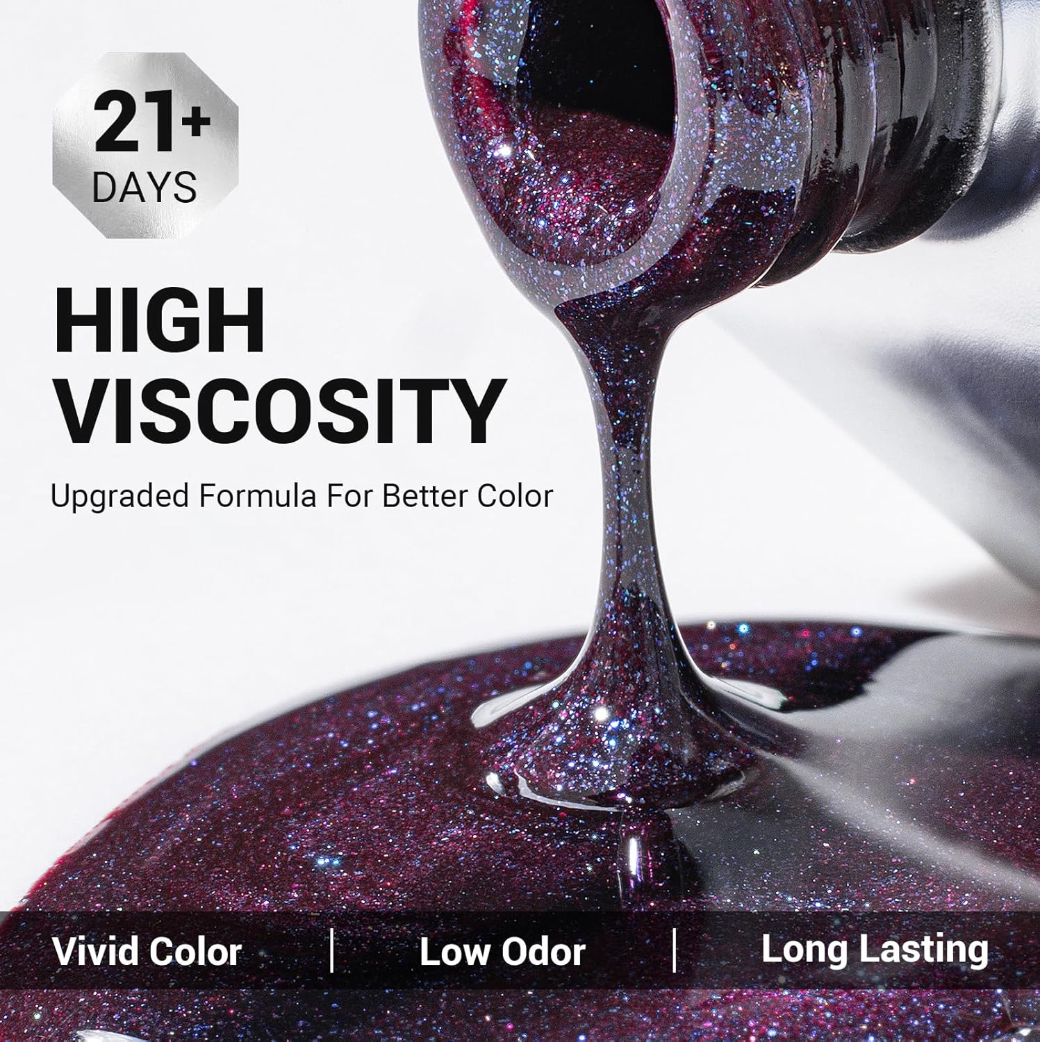 - PREMIUM& DURABLE FORMULA: Our gel polish is carefully crafted to achieve a highly saturated and high-gloss manicure effect that lasts up to 21+ days when used properly.The formula also focuses on enhancing durability, ensuring your nails stay beautiful during your daily activities.