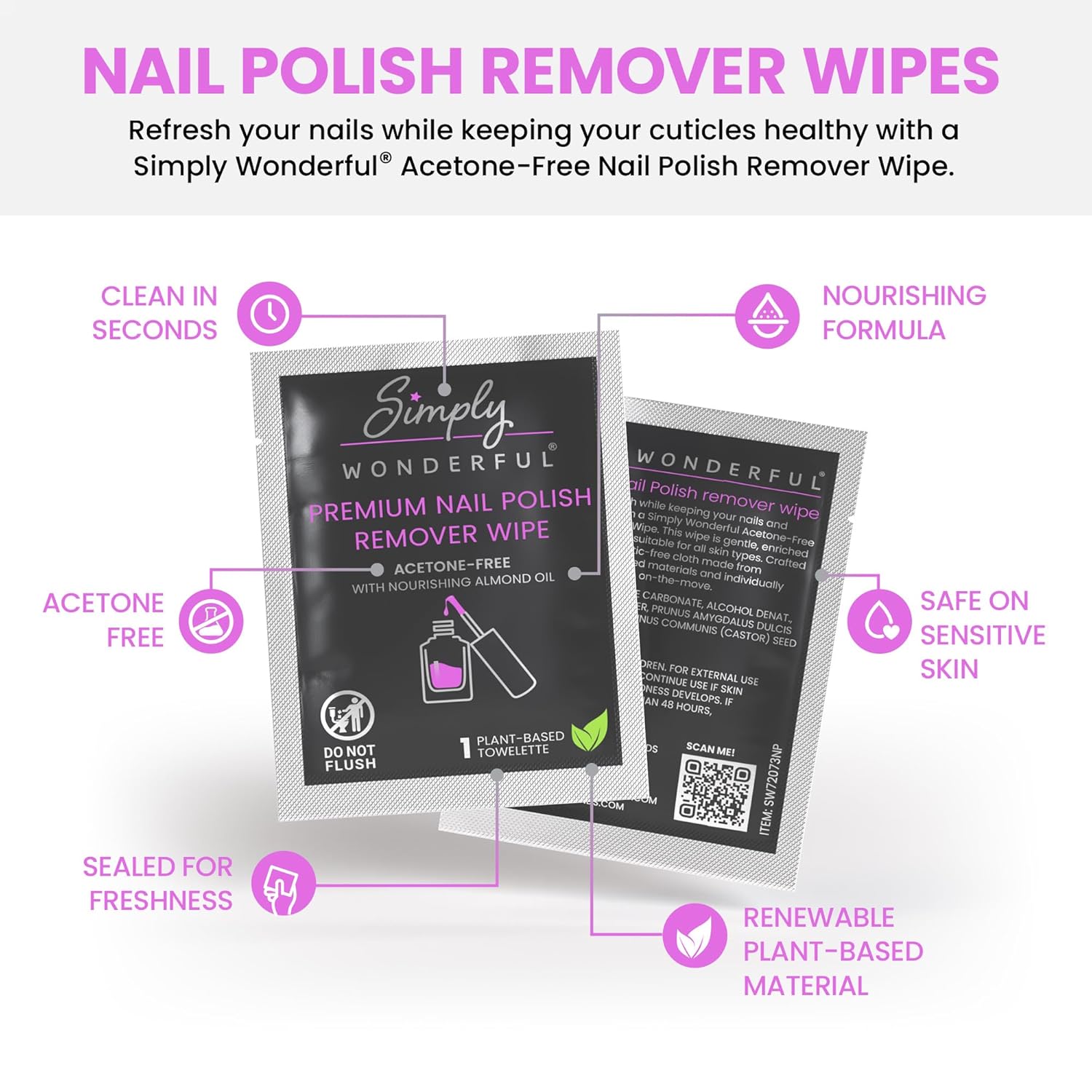 - Acetone-Free Nail Polish Remover: Our Simply Wonderful Nail Polish Remover Wipes are acetone-free, making them a safer, non-toxic alternative to acetone nail polish remover. Ideal for use with your favorite nail polish set.
