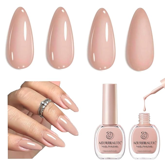 AZUREBEAUTY Nude Nail Polish Set, Light Brown Nail Polish Quick Dry Natural Infinite Shine Nail Lacquer Fingernail Polish Kit Salon-Quality for Women 2 PCS 0.34 oz Each