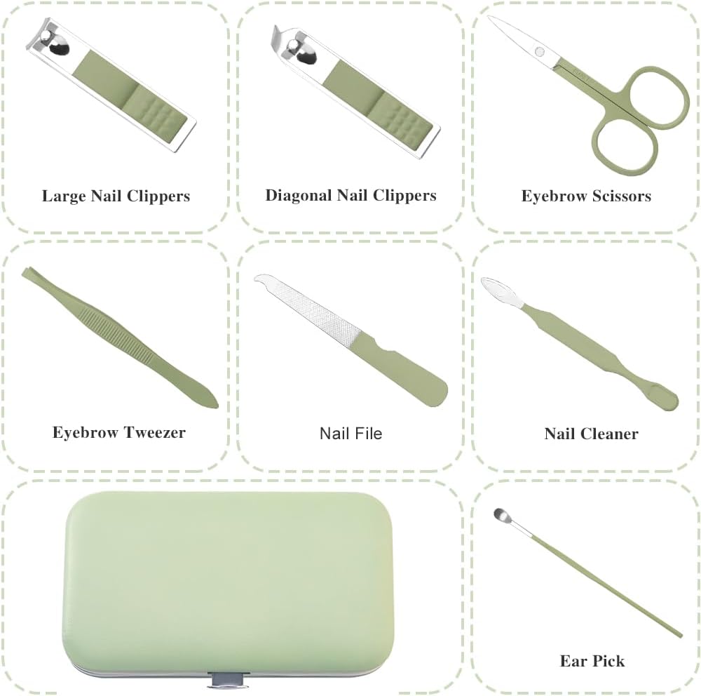 - 🪞 BEAUTY & PERSONAL CARE TOOLS : The nail clipper set contains 7 tools (large nail clipper, small slant nail clipper, eyebrow clipper, eyebrow tweezer, ear digger, nail file, nail cleaner), which are specially designed to fulfill a wide range of functions such as hand care, foot care, and facial care, which can meet your personal daily care needs