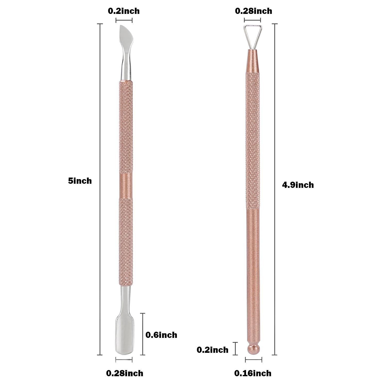 - ❤Easy to Use❸ :Cuticle pusher flat head:push down cuticles around nails or push the polish gel residue after removing; Cuticle pusher curved head: Remove the dead skin on nails,or remove the false nails pusher tool,clean the dirt under nails or remove the false nails;