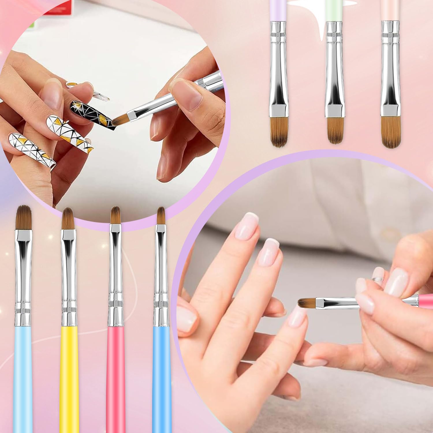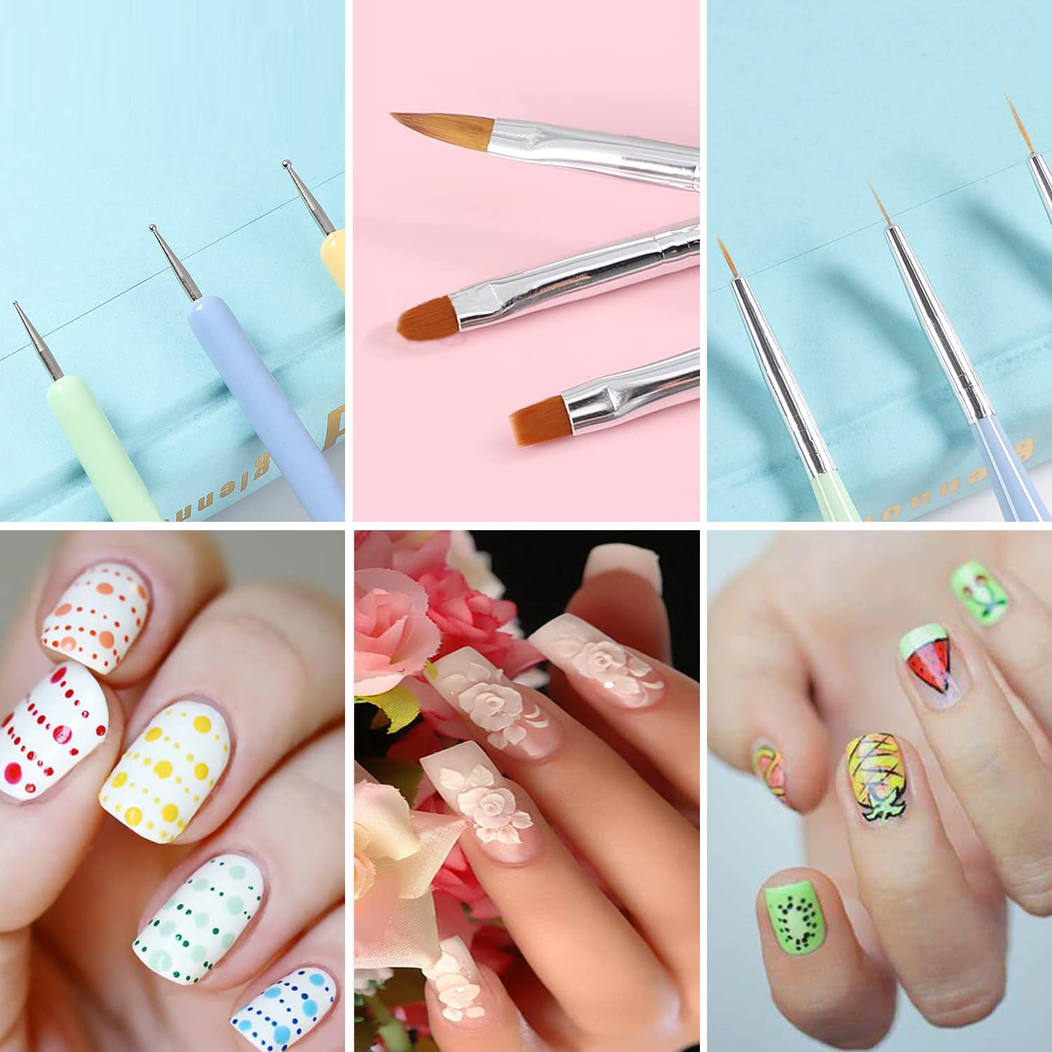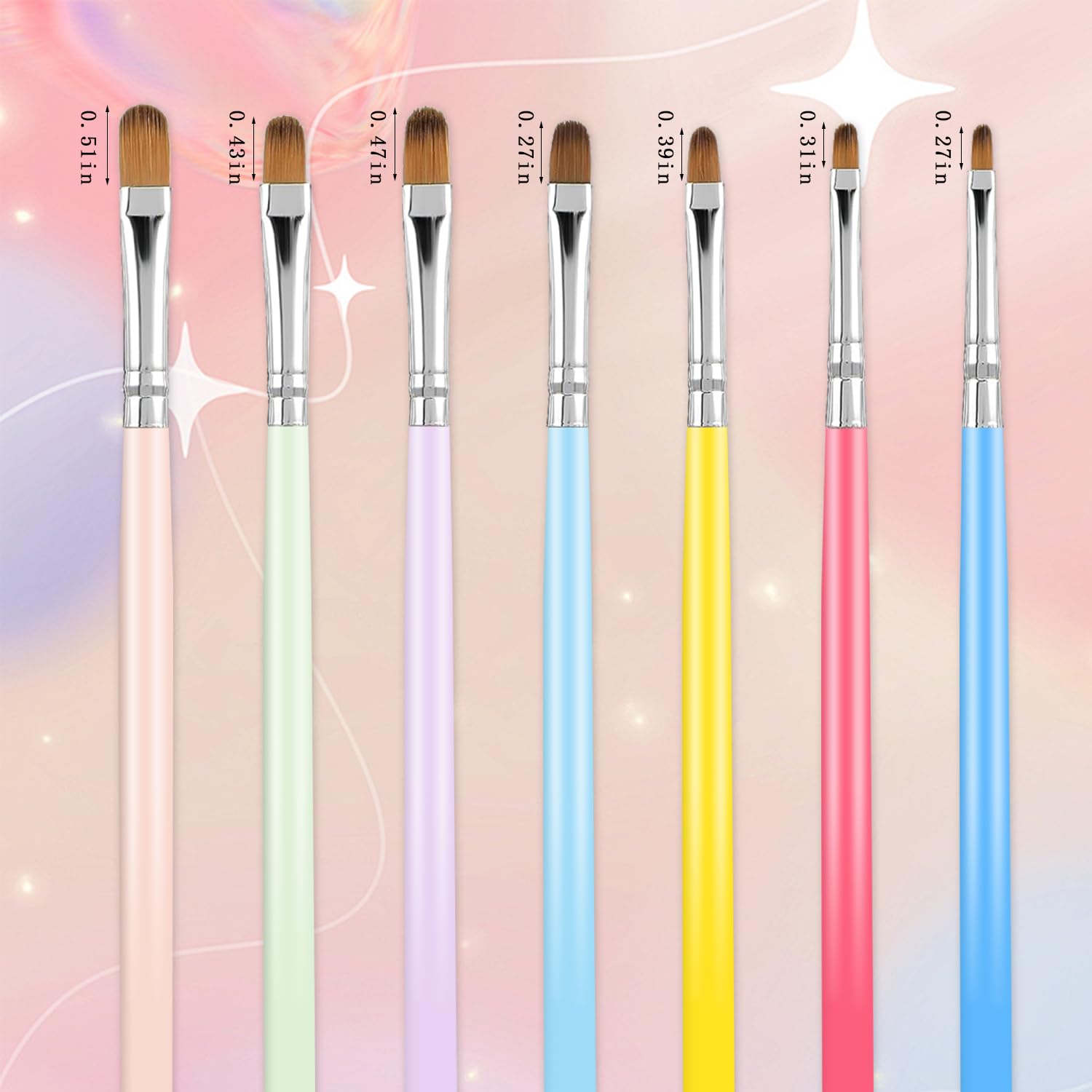 - VIBRANT MACARON COLORS WITH STURDY HANDLES: Each brush handle is uniquely colored in a vivid macaron palette, not just for style but also for durability. The wooden handles are strong and lightweight, providing a comfortable grip for hours of nail art sessions.