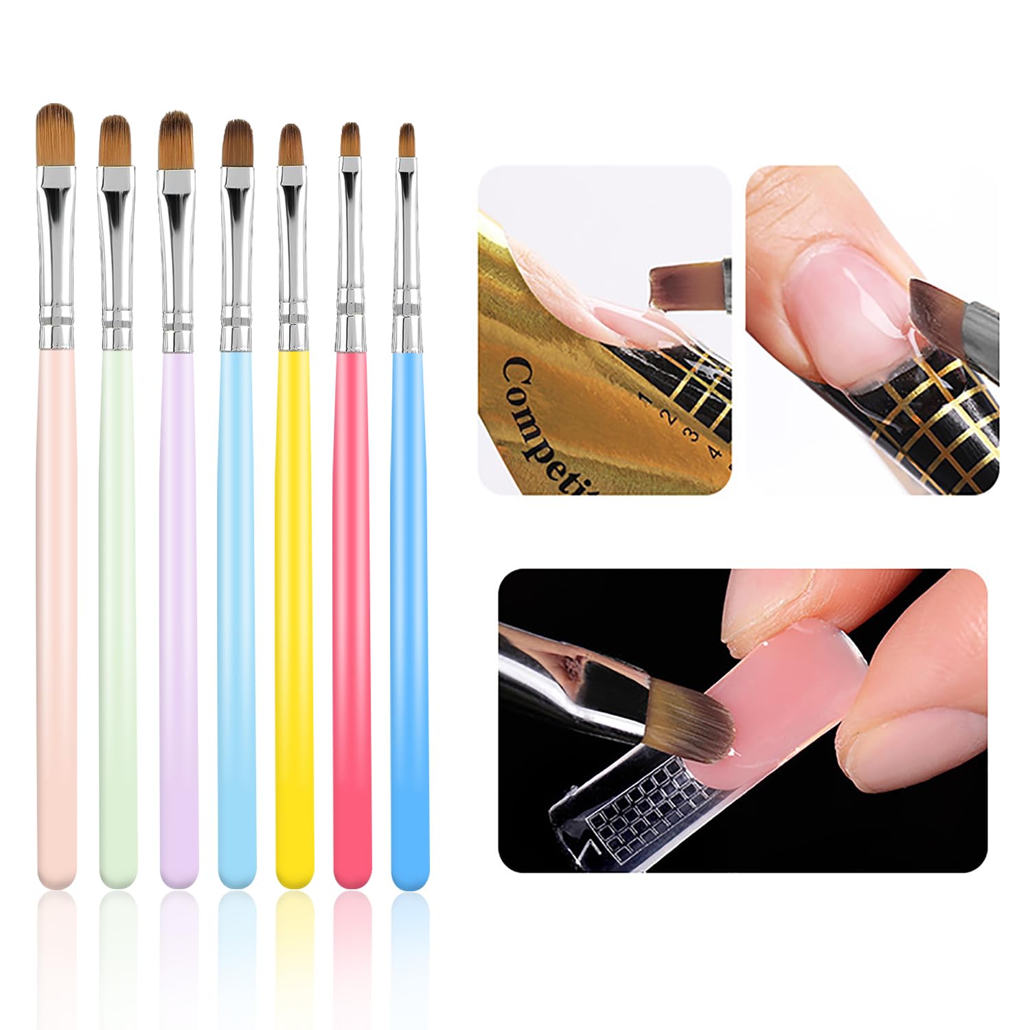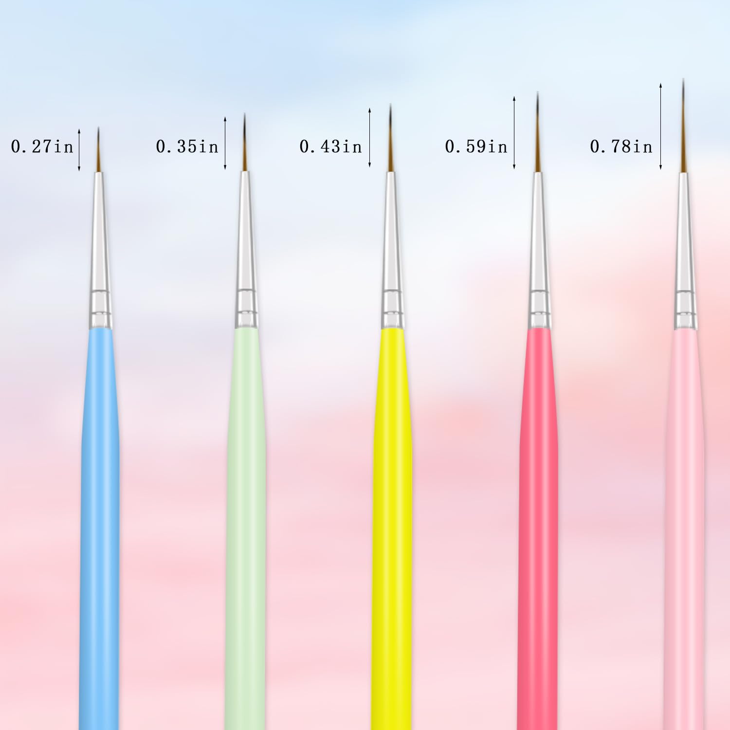 - VIBRANT MACARON HANDLES: Each brush handle is uniquely colored in a vivid macaron palette, adding a touch of fun and style to your nail art sessions. The bright colors are sure to inspire creativity and make your workspace more enjoyable.