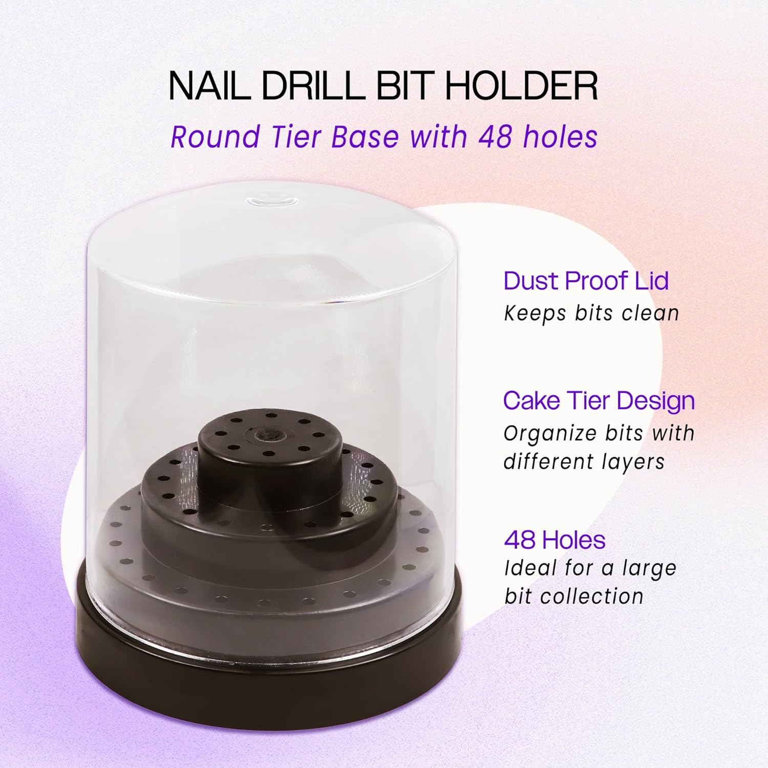 - đ¸ ăDurable & Lightweightă: NAIL BITS NOT INCLUDED. Constructed from premium plastic, this holder is built to withstand regular use while remaining lightweight for easy handling. It offers robust protection for your nail drill bits without weighing down your kit or workspace. Contains: 1 Piece Round Tiered Holder | Black | 3.6 x 3.1 inches diameter