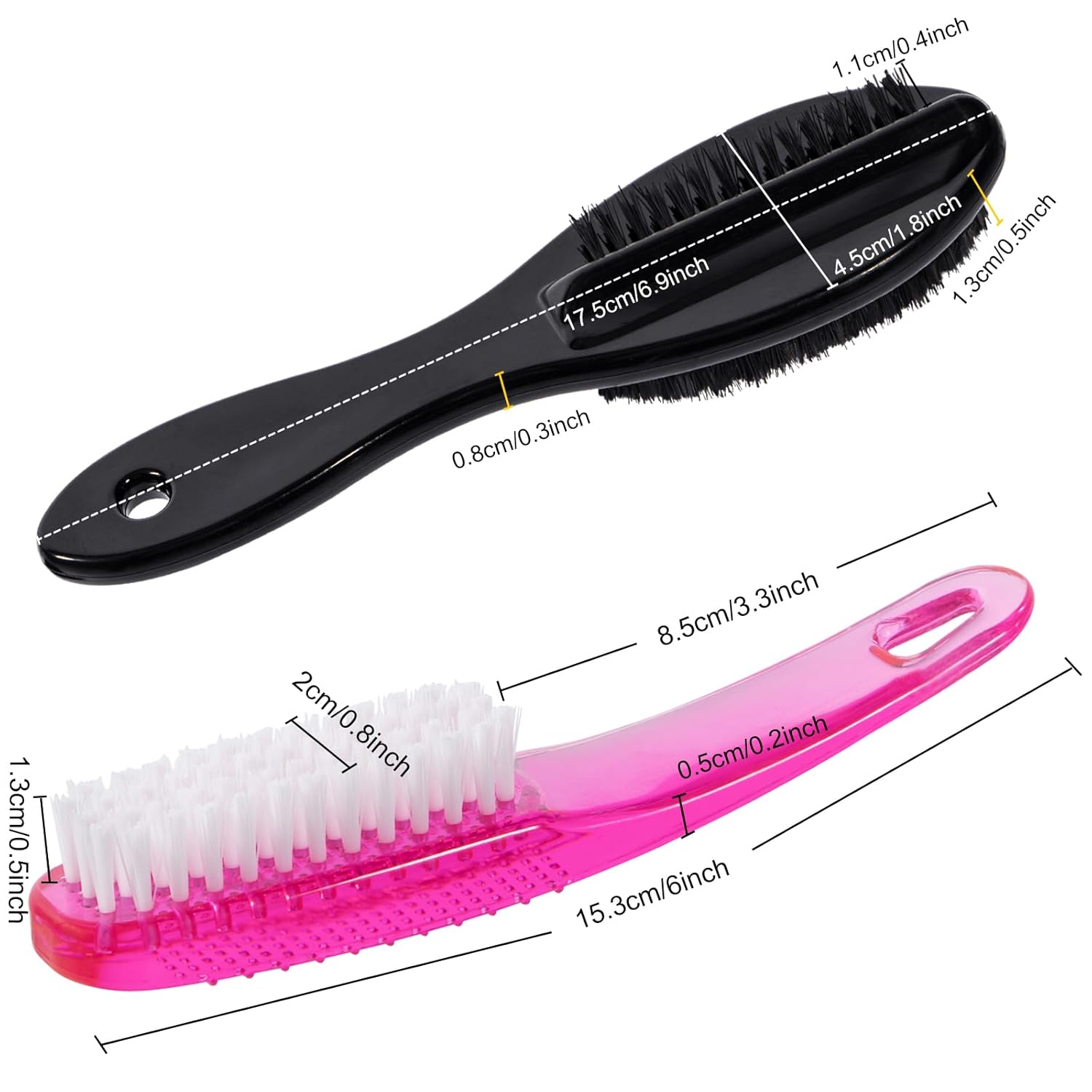 - MATERIAL- The handle of nail cleaning brushes is made of high quality polystyrene, durable, reusable. The bristles of nail brush are made of nylon plastic, which are not too soft or hard, not hurt your skin