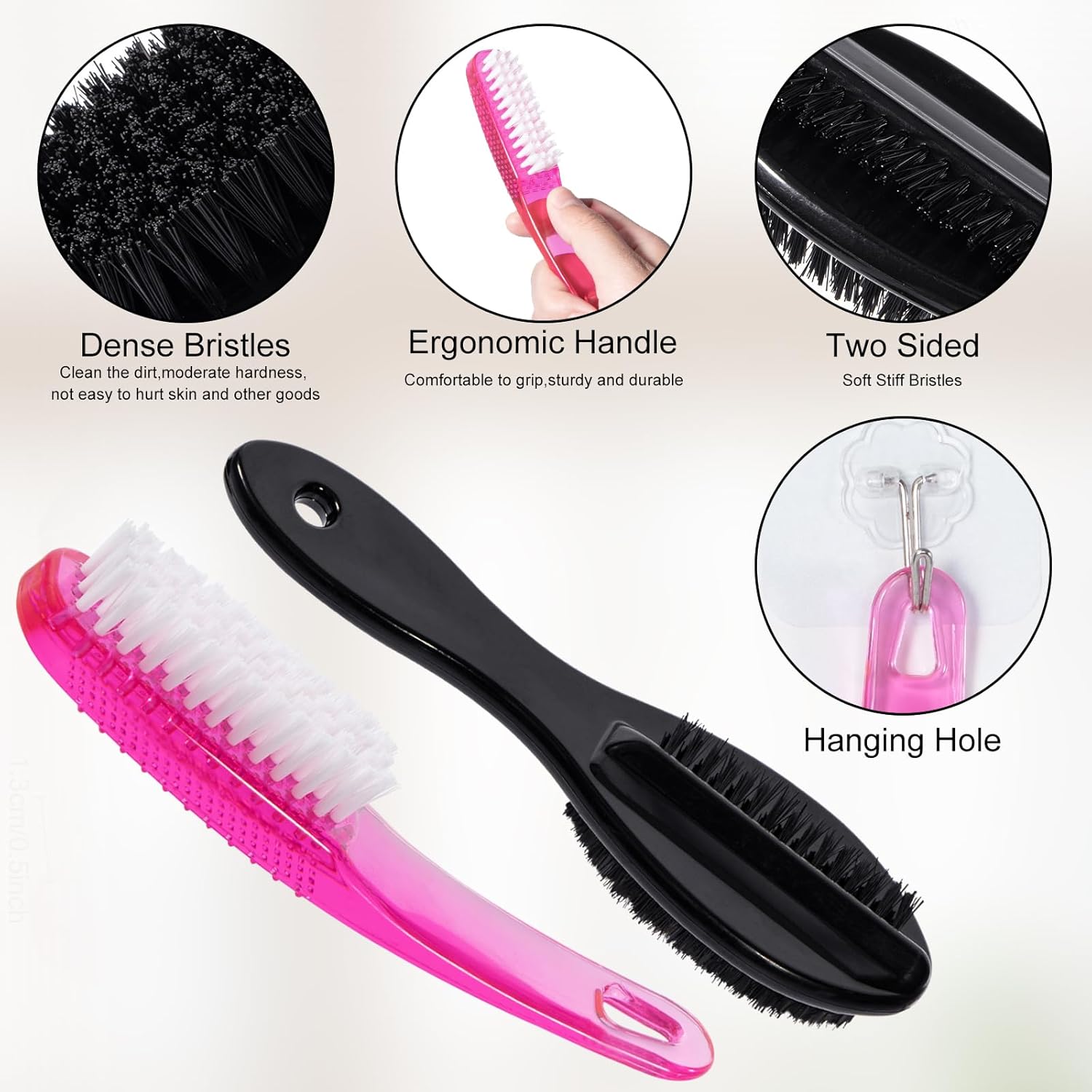 - DOUBLE SIDED- Our brushes have double sided bristles design; The firm, coarse bristles of our scrubbing brush effectively clean under nails;Thickened handle, comfortable hand feeling, sturdy and durable