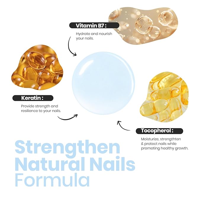 - 【Keratin-Infused Nail Care】: This nourishing nail concealer polish is enriched with three key ingredients—Keratin, Vitamin B7, and Tocopherol—that work together to strengthen, thicken, and repair your nails, leaving them looking beautiful and healthier than ever.