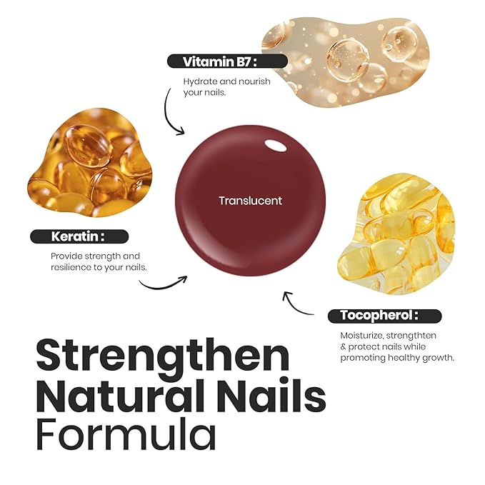 - Armor ingredients: Different from ordinary nail polish, this sheer jelly nail polish set contains keratin, vitamin B7, tocopherol and other nail care ingredients, which increase the thickness and hardness of nails and speed up the recovery of nails.