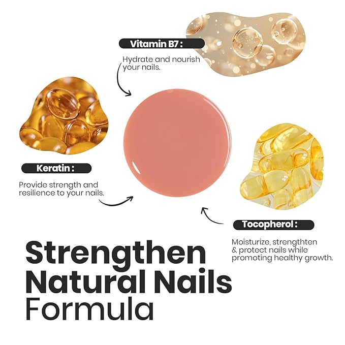 - Nourishing & Strengthening Formula: Our nude quick dry nail Polish set is infused with keratin, vitamin B7 (biotin), and tocopherol (vitamin E) to deliver vibrant, long-lasting color while actively strengthening and protecting your nails. This gentle, non-damaging formula helps prevent brittleness and peeling, so your manicure stays flawless and your nails stay healthy underneath.