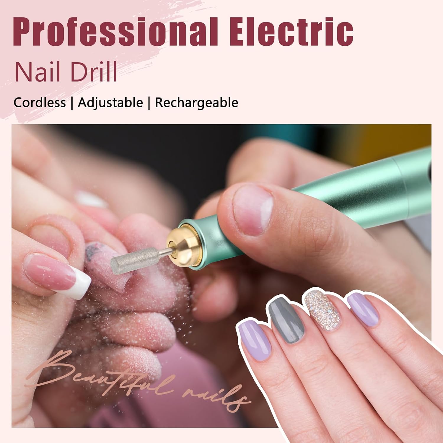 VINGVO Cordless Electric Nails Drill Filer Set, Professional Manicure Pedicure Kit with Bits for Acrylic, Portable Electric Files & Buffers for Toenail Cuticle Hand Foot Care Polish Tool (Green)