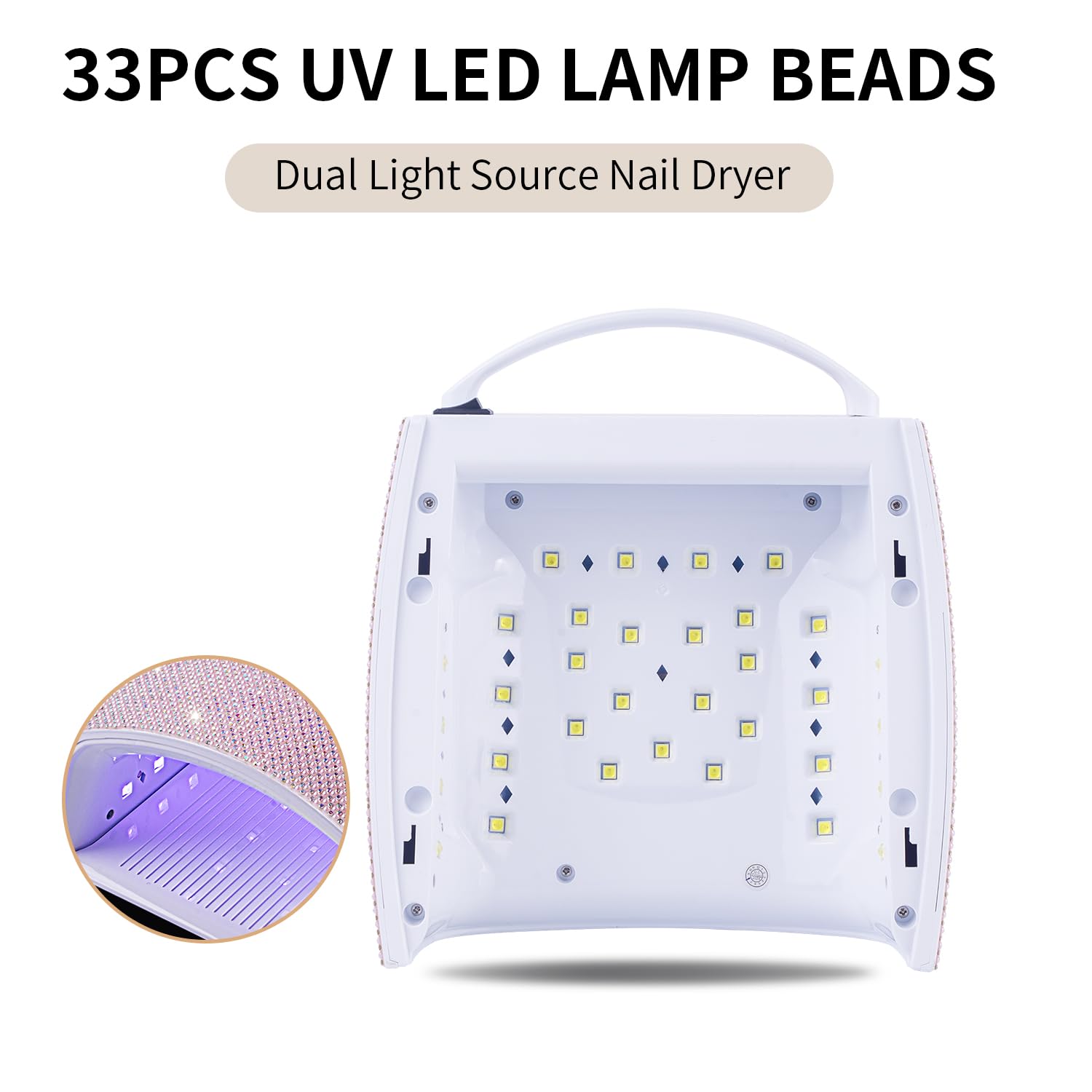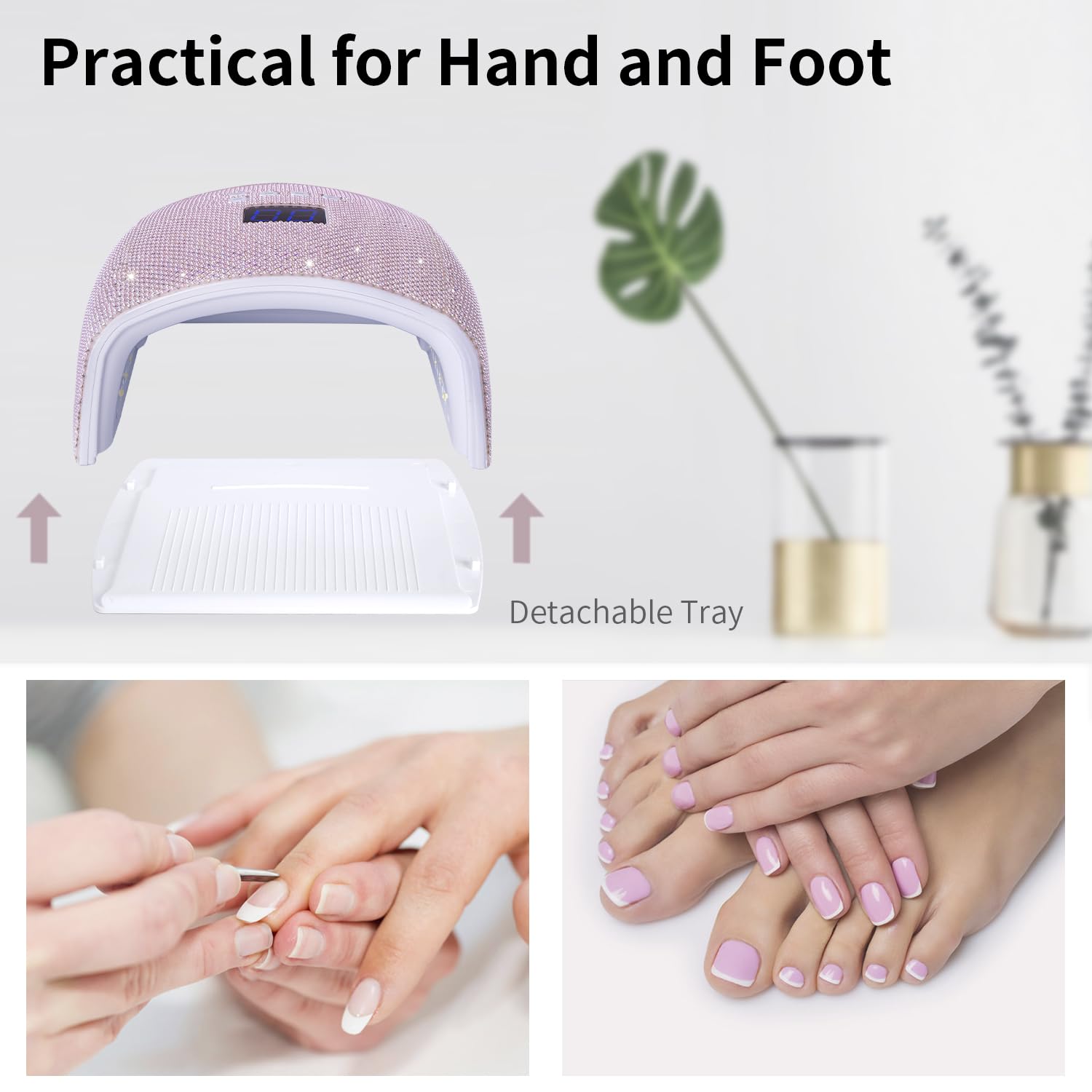 - [Cure all kinds of Gel Nail Polish]: We’ve already pioneered the dual optical wavelength(365nm+405nm) lamp beads makes LED UV lamp work with all kinds of nail gel, such as UV nail gel, LED nail gel, nail builder gel, nail sculpture gel, rhinestone gems glue, top coat and base coat for nail gel.