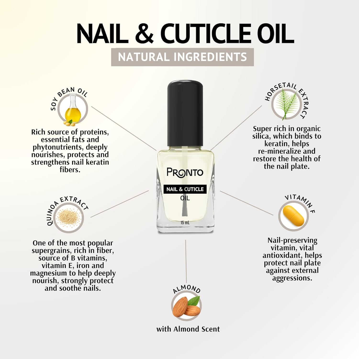 - PREMIUM QUALITY PRODUCT: Our Pronto fingernail polish remover & cuticle drop duo are proudly made in USA, using 100% pure acetone to effectively and efficiently remove all types of manicure and pedicure and cuticle oil to help deeply nourish and protect nails.