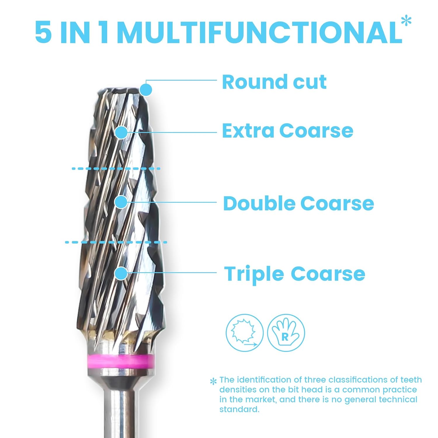 - Professional Bits Fit with Most Nail Drill: 3/32" Shank Carbide Bit is suitable for most drill machines and only for clockwise rotation using. The design of 5in1 mixed 3 Coarseness with R-cut and teeth on the top brings more efficient work. This improved tooth profile is more suitable for professional users.