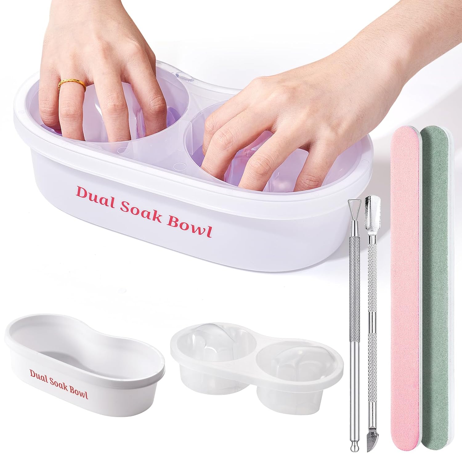 - Innovative Double-Hand Design: Our dual nail soak bowl is designed to accommodate both hands simultaneously, eliminating the need for two separate bowls and saving valuable counter space. This unique feature allows you to soak and remove nail polish from both hands at once, streamlining the process and saving you time compared to traditional single-handed bowls